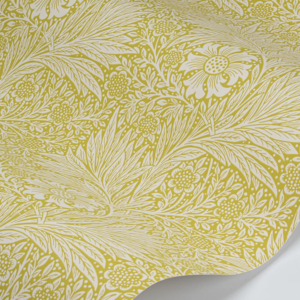 Marigold Wallpaper by William Morris is a classic illustration of fine style never going out of date. 'Marigold' is an intricate weaving of floral elements on plain colour backgrounds. This wallpaper that has been kicking around for well over a hundred years now is still a style icon.
