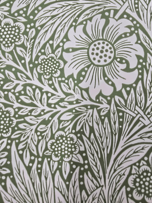 Marigold Wallpaper by William Morris is a classic illustration of fine style never going out of date. 'Marigold' is an intricate weaving of floral elements on plain colour backgrounds. This wallpaper that has been kicking around for well over a hundred years now is still a style icon.