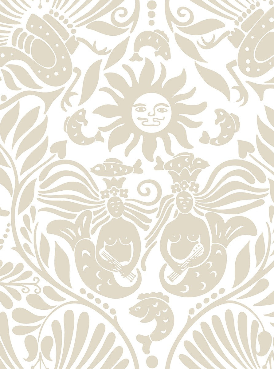 Mermaid Groove - Custom Sized Wallpaper Mural (per m2) - Beige