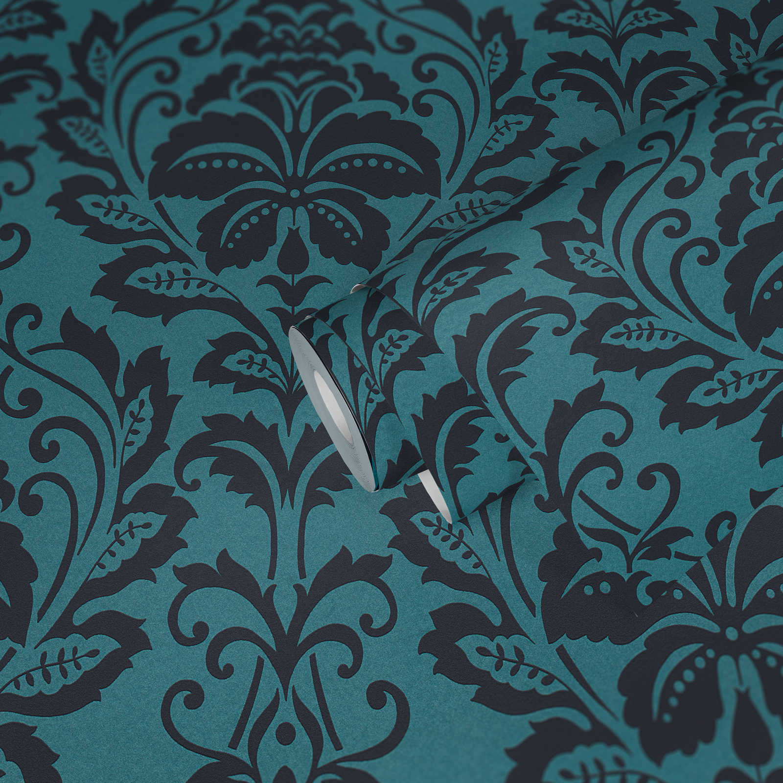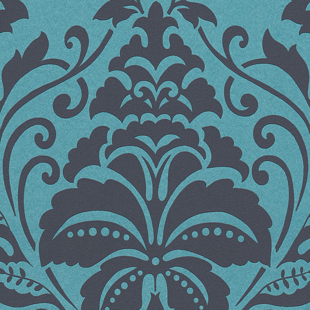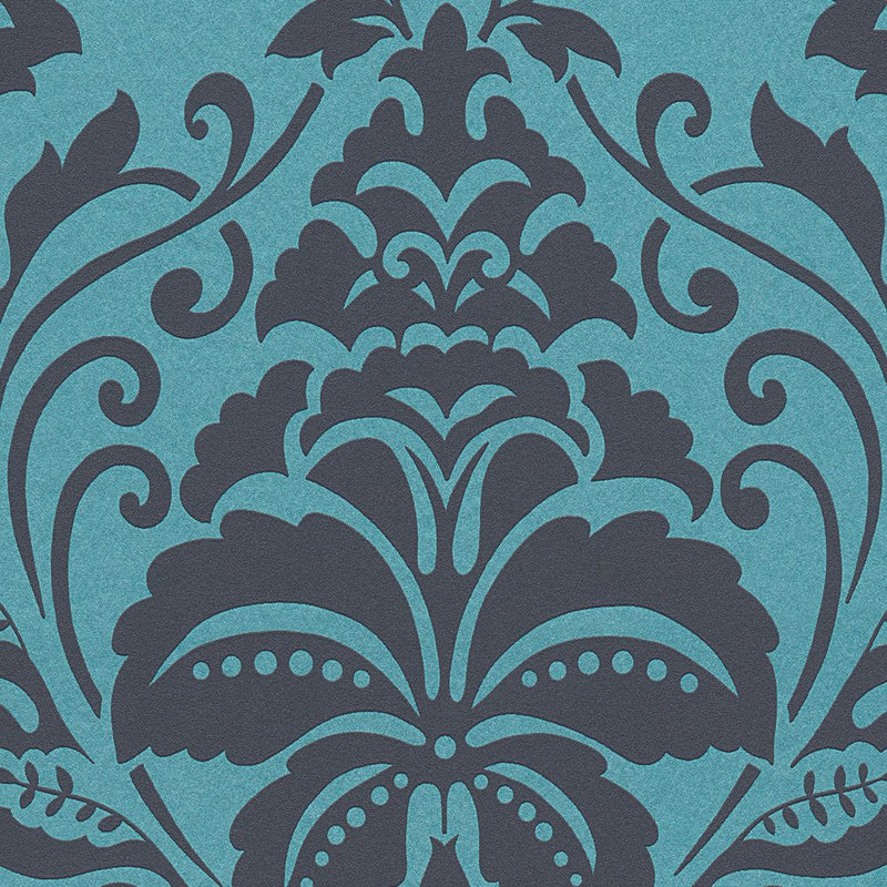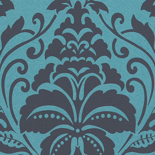 Metallic Baroque Damask Wallpaper - the name says it all. The attractive non-woven wallpapers from A.S. Creation is an ideal choice for modern living. The wallpaper 369105 with baroque ornaments on a foil silver backing is stunning. Turquoise Peacock Teal with metallic effect is a unique item in every living room and provides a pleasant room atmosphere to feel good in.