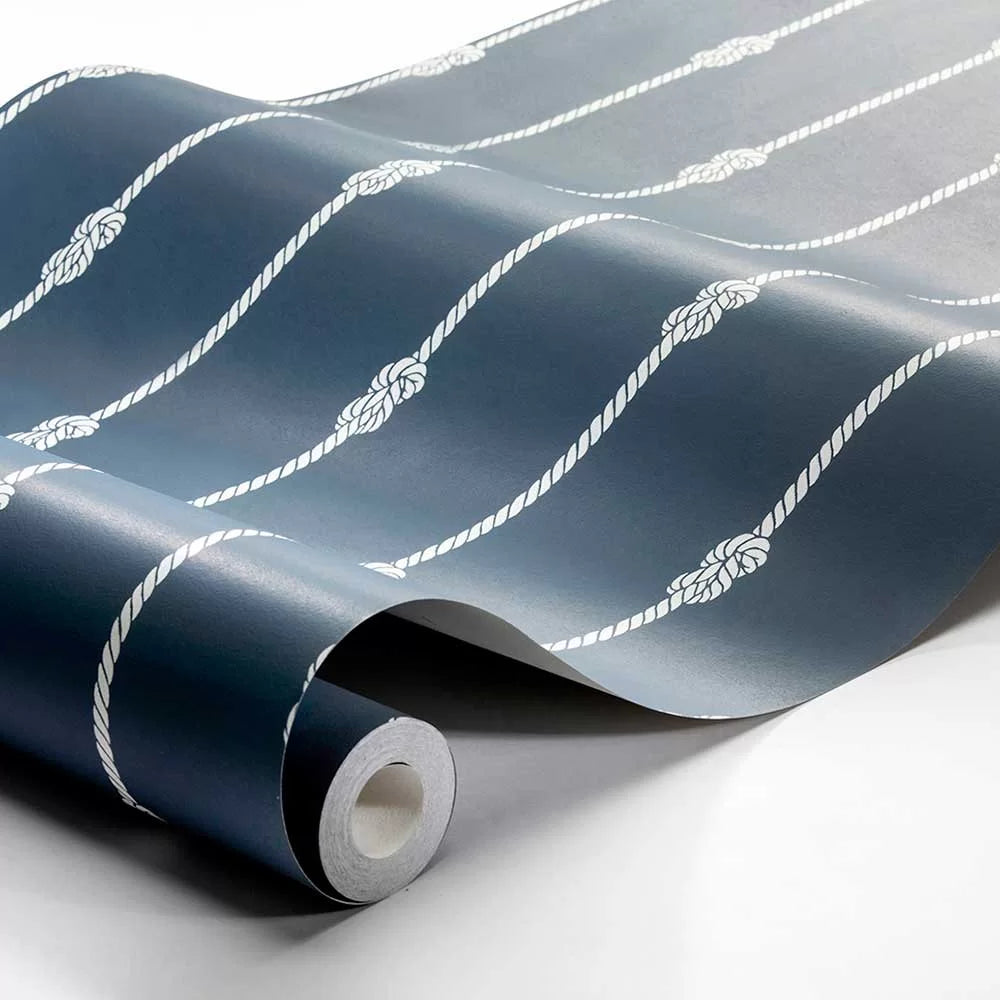 A fabulous nautical rope stripe design with knots by Borastapter wallcoverings.