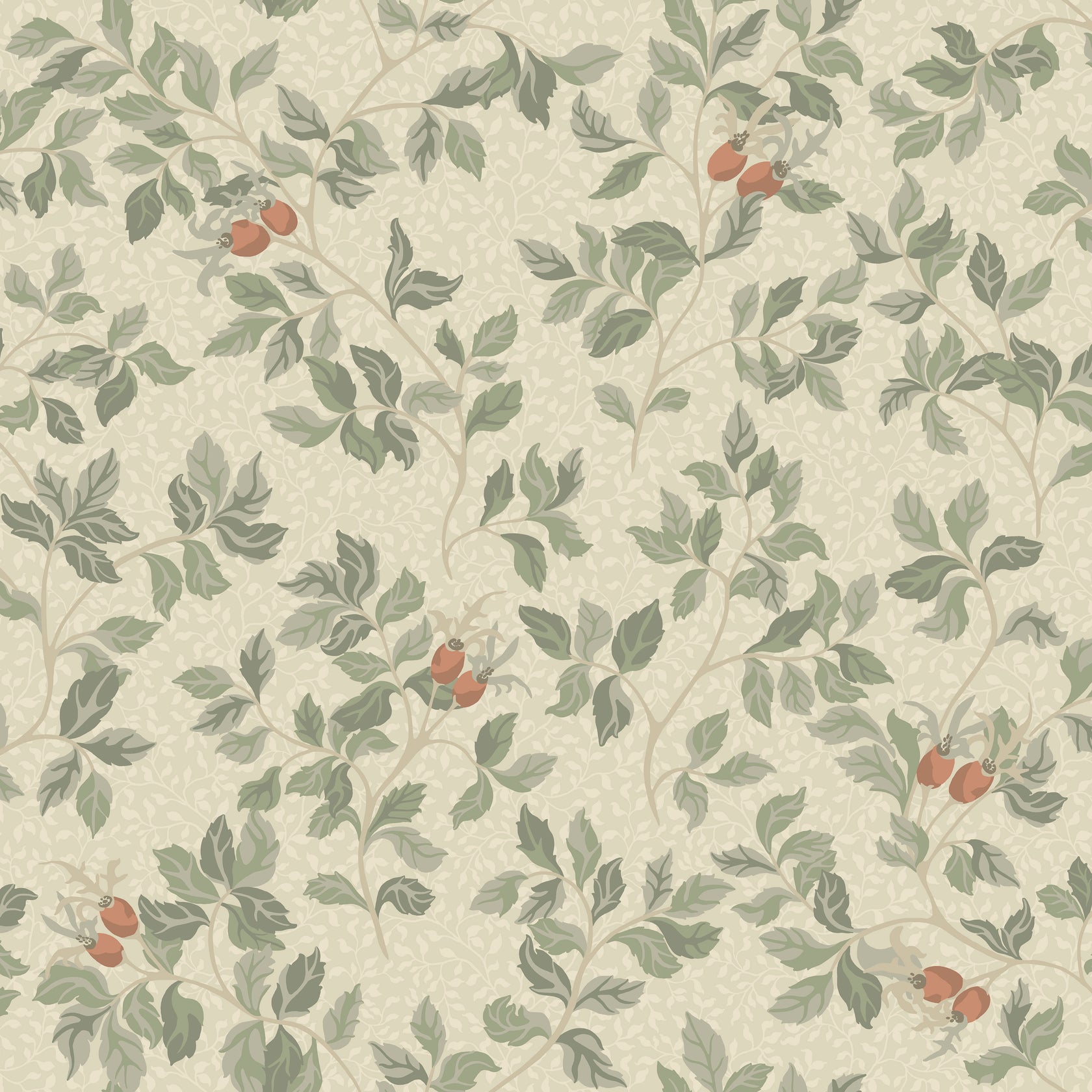 The wild rose bush serves as the inspiration, but here the flowers have faded, leaving the rose hips behind. Rose hips grow wild across our country, remaining decorative well into autumn and sometimes even through winter. Nora is both intricately winding and wild at the same time. In the background, a leafy vine grows, reminiscent of the beloved design found in Folke from our previous collection, Flora. Nora is available in four colourways, ranging from calming beige to more true-to-life shades of green and rust.