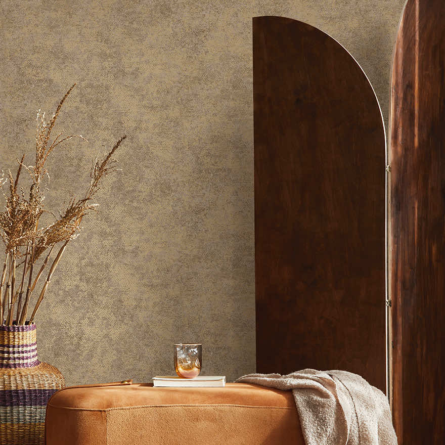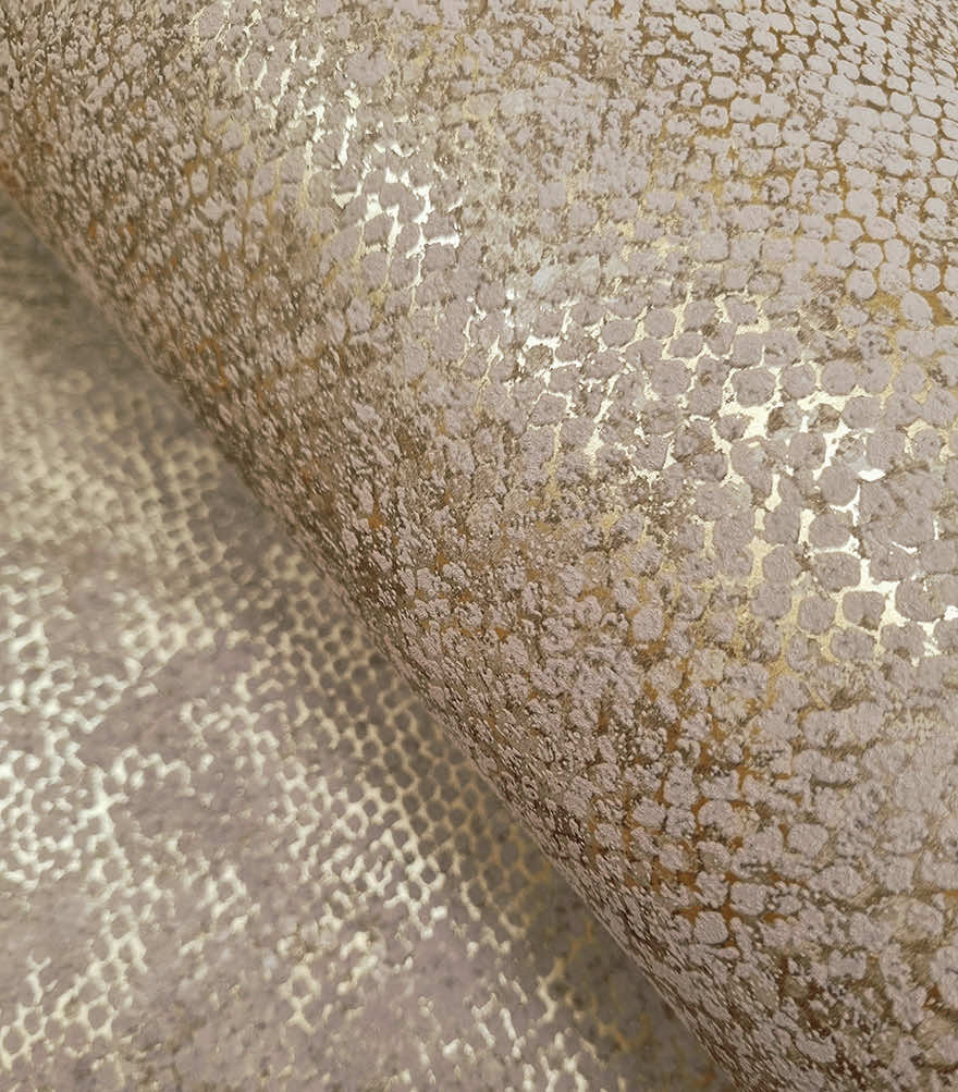 Inspired by snake skin and adorned with a scale-like metallic pattern and a raised surface. This luxurious design enhances any space. PVC-Free textured wallcovering.