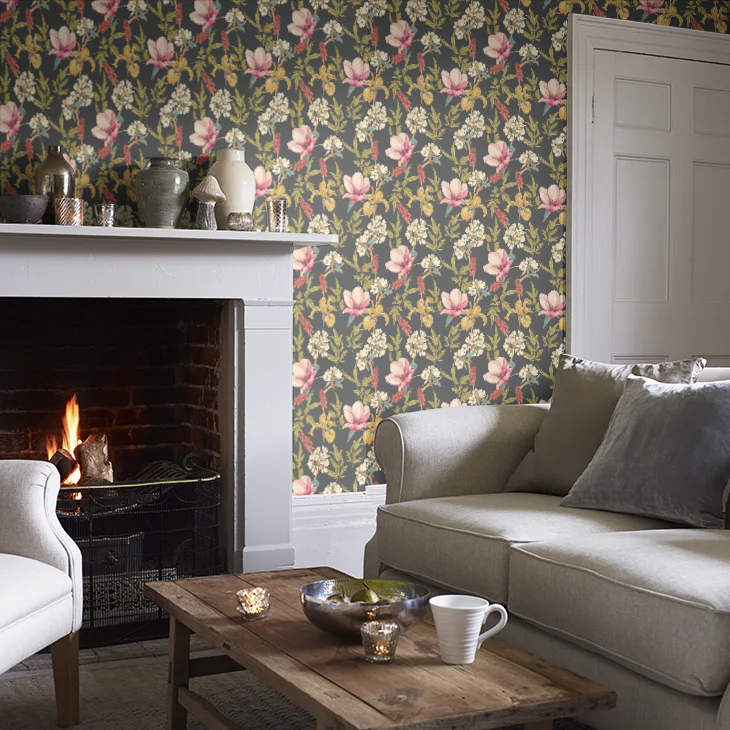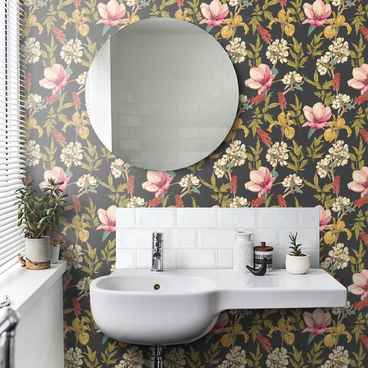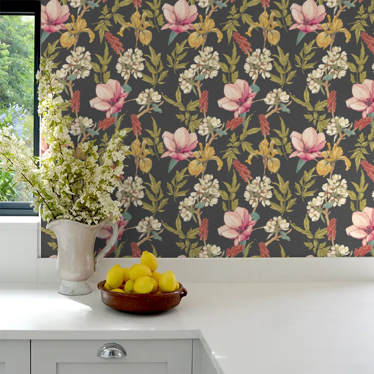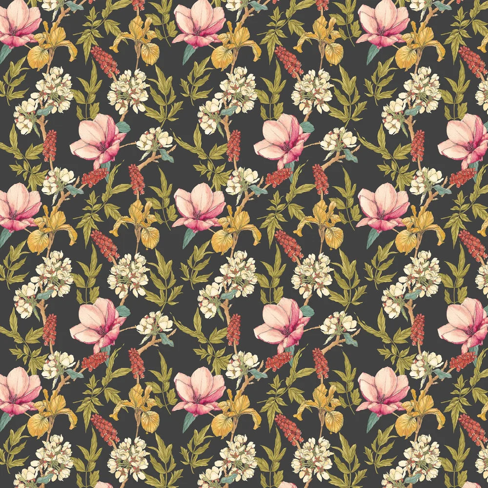 Orchid Bloom Wallpaper - Ebony & Raspberry