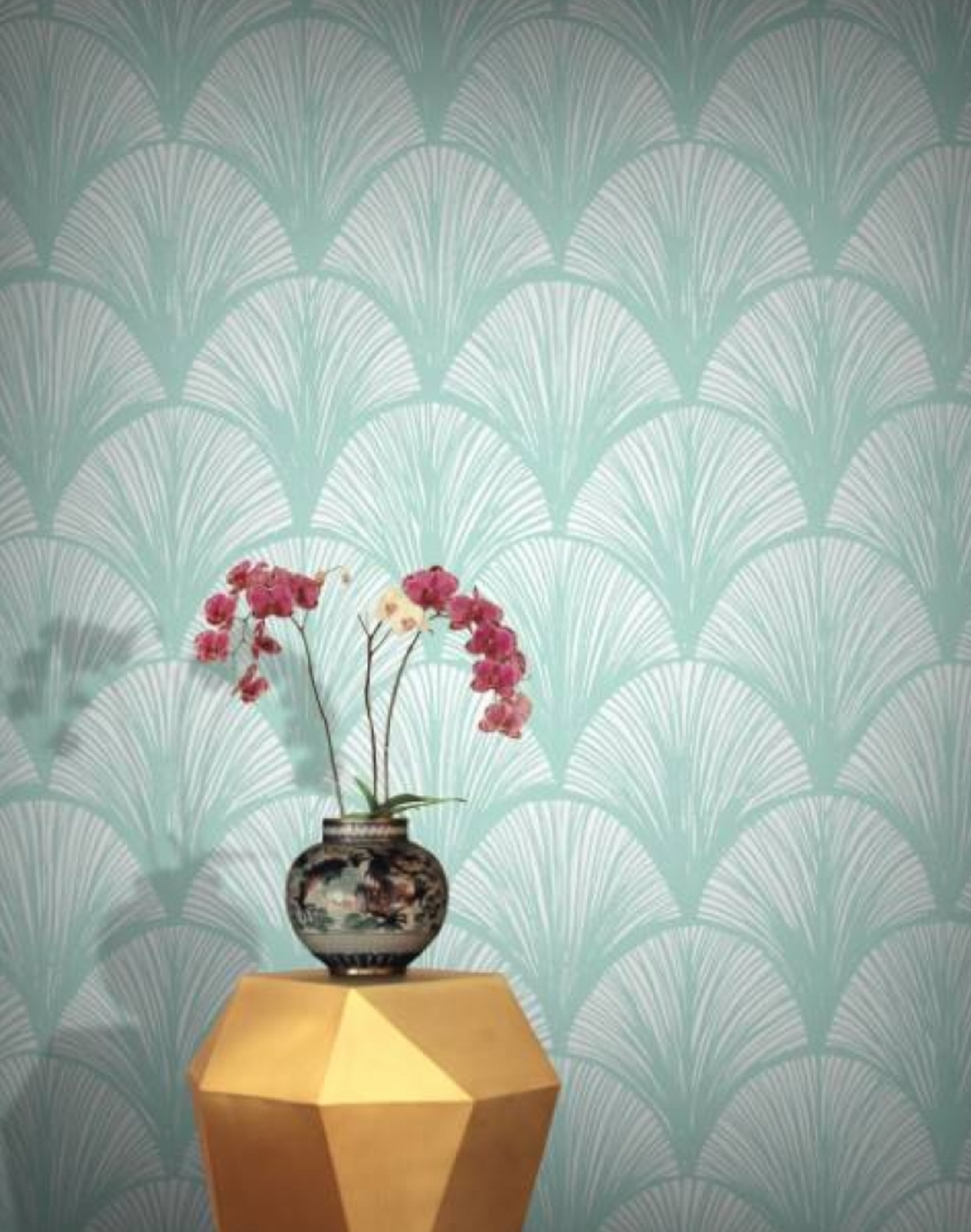 Orchid Scales wallpaper - created by Michiko Design as a nod on the traditional Japanese scallop design. This pretty Art Deco wallpaper lets colour and design speak to create a luxurious contemporary design that fits modern homes.