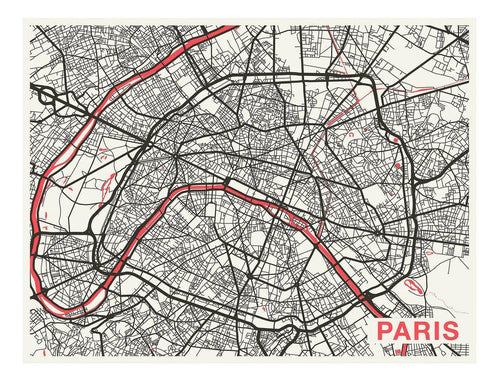 Paris City Art Map - Tomato - Custom Sized Wallpaper Mural (per m2)
