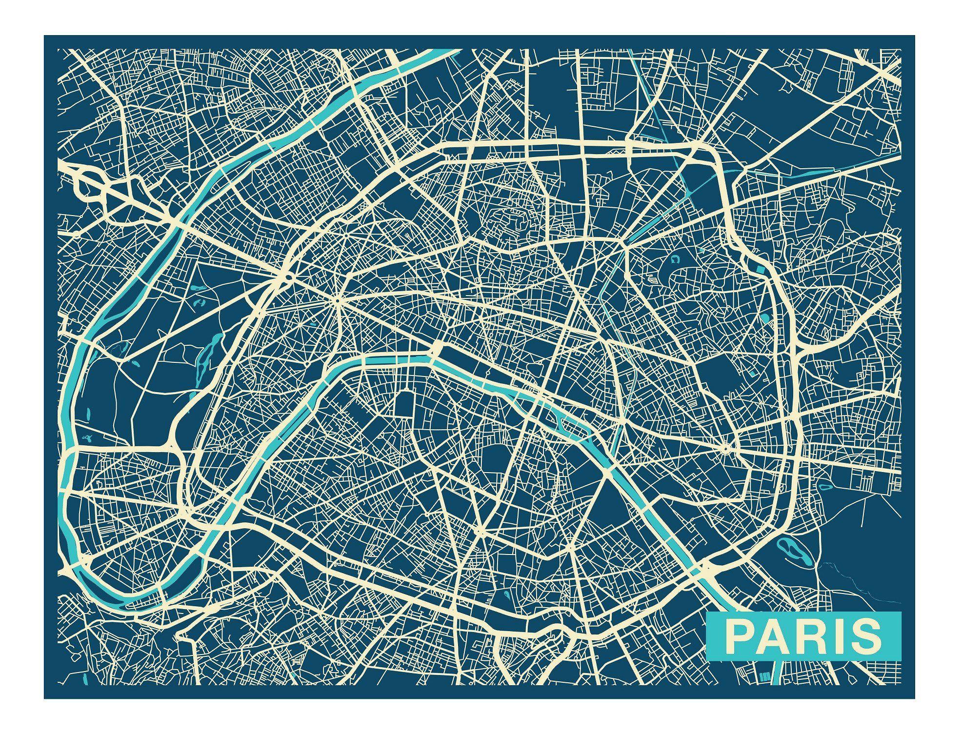 Paris City Art Map - Twilight - Custom Sized Wallpaper Mural (per m2)