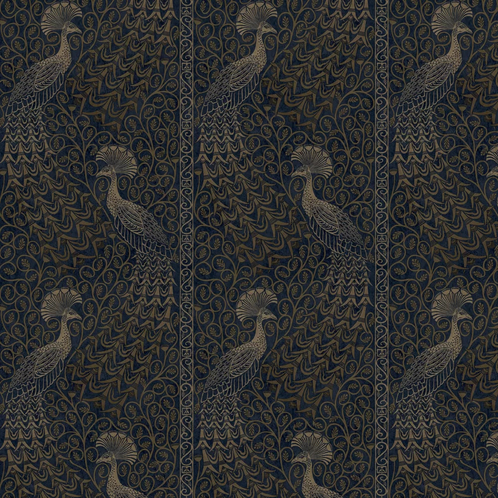 Pavo Parade Peacock Wallpaper - Metallic Bronze/Midnight