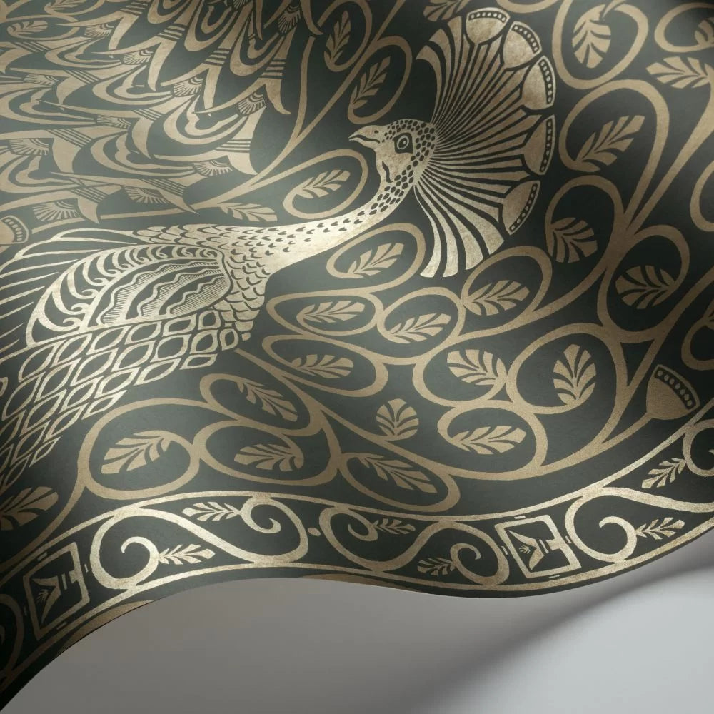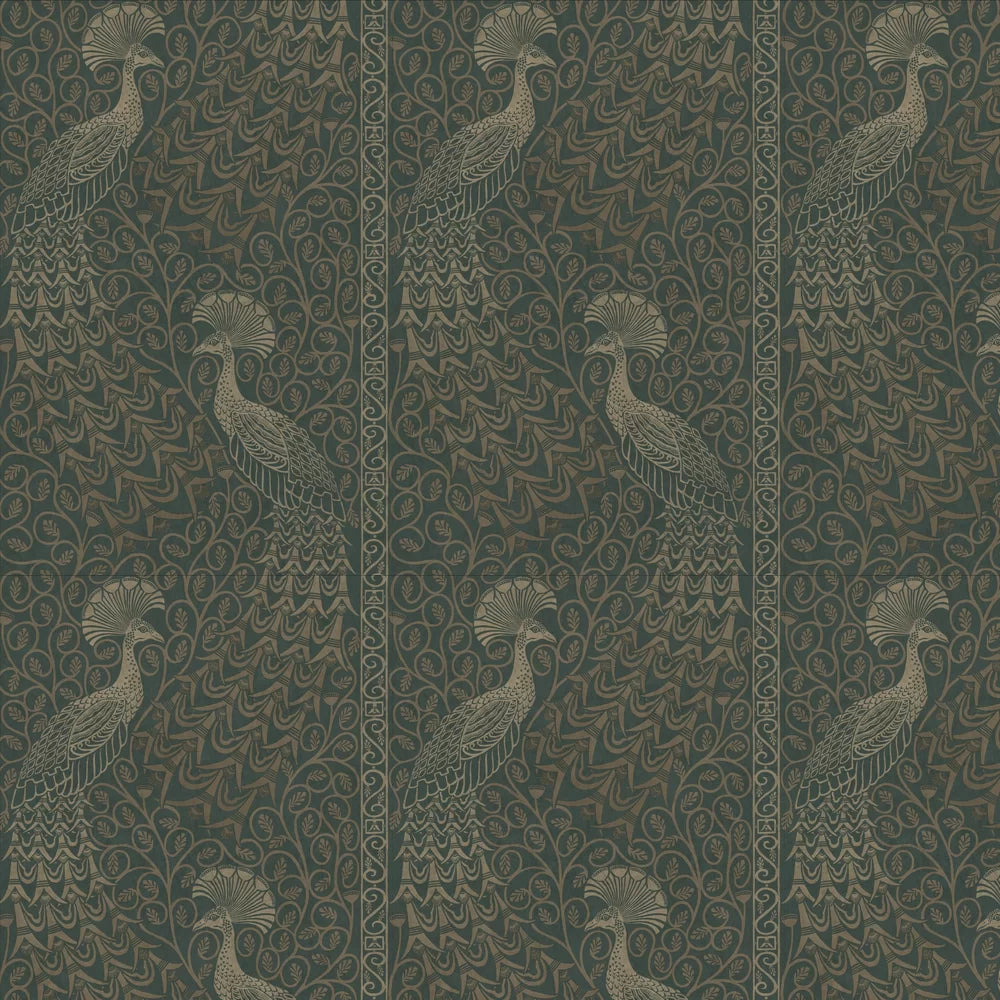 Pavo Parade Peacock Wallpaper - Metallic Gilver/Green