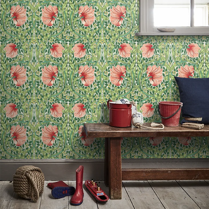 Pimpernel Wallpaper - Shamrock/Watermelon