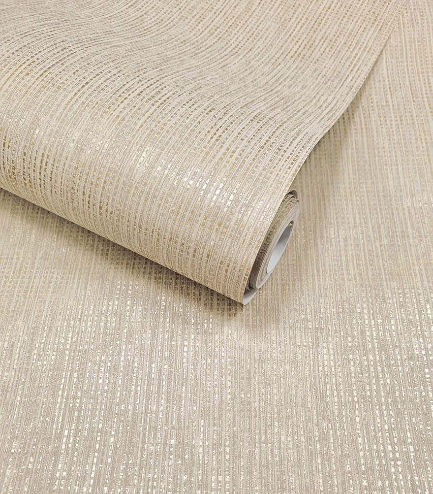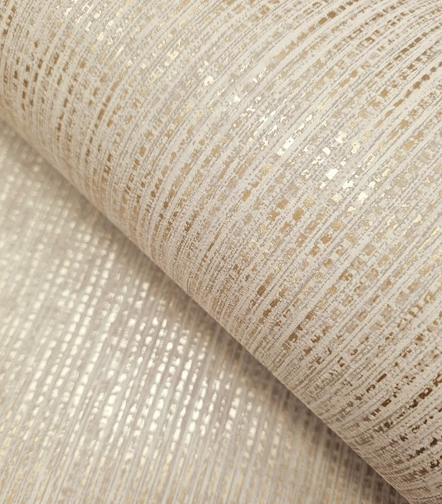 Drawing inspiration from the organic beauty of woven straw, this texture mimics the feel of woven fibres and the backdrop of metallic shimmer brings a touch of Luxury. . PVC-Free textured wallcovering.