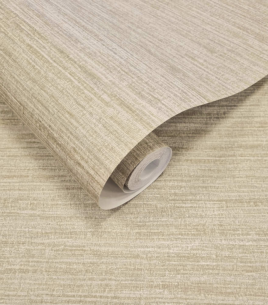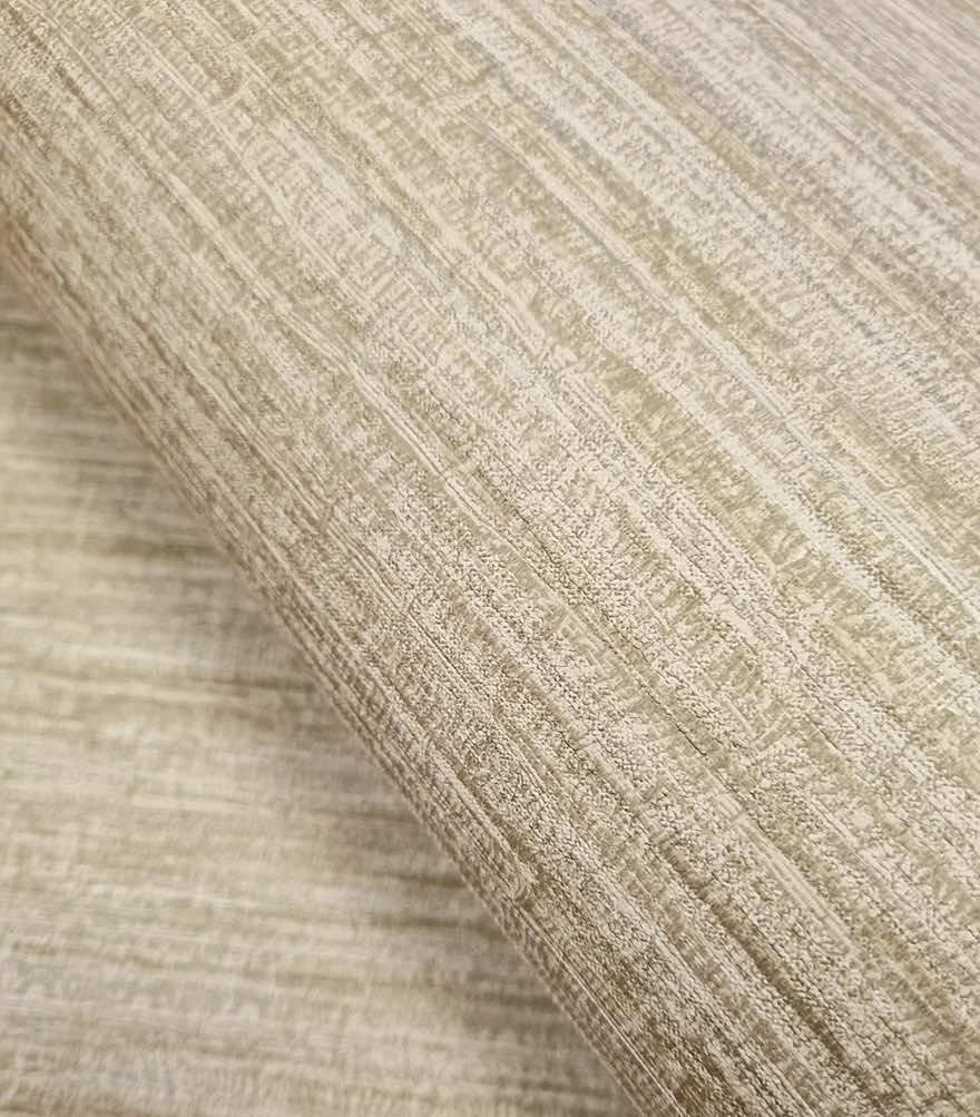 This wallpaper appears as if it was intricately crafted and handwoven with slight variations, that lend an artisanal feel to the overall design. The subtle metallic qualities appear to be woven seamlessly into the tactile surface. PVC-Free textured wallcovering.