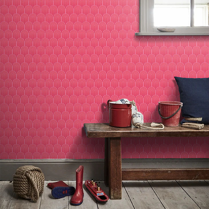Ideal for creating a statement wall in living areas, entryways, or bedrooms, this wallpaper brings architectural interest and playful sophistication to your interior. The clean lines and rhythmic pattern work beautifully with both bold accent pieces and minimalist decor, offering a fresh take on classic deco style that feels both nostalgic and completely current.