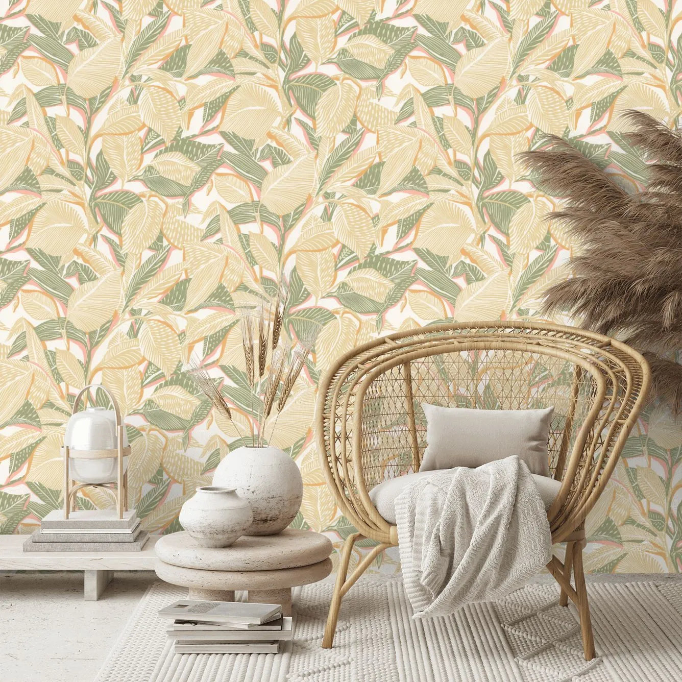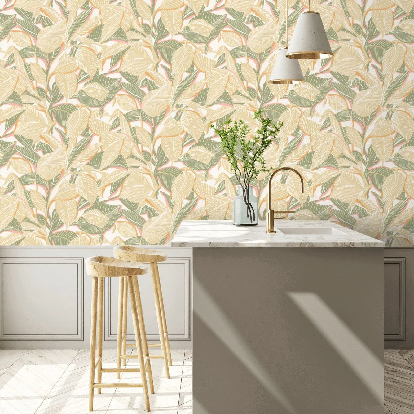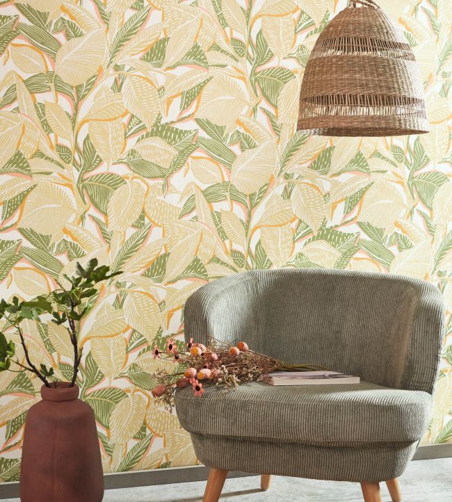 Add a year-round summertime feel to the home with Riviera wallpaper from the Mediterranee collection by Casadeco, graceful foliage climbs the wall bringing a touch of nature to interior spaces. Printed on a smooth non-woven substrate, Casadeco Riviera wallpaper is shown here in Lagon.