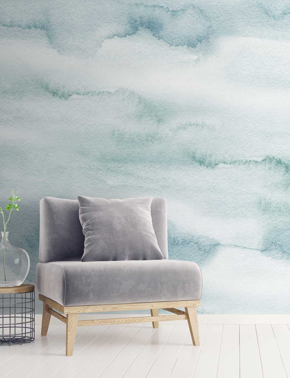 The Design: The subtle cream and taupe watercolours in this beautiful sky wallpaper mural create a subtle and relaxing style ideal for using as living room wallpaper or bedroom wallpaper.