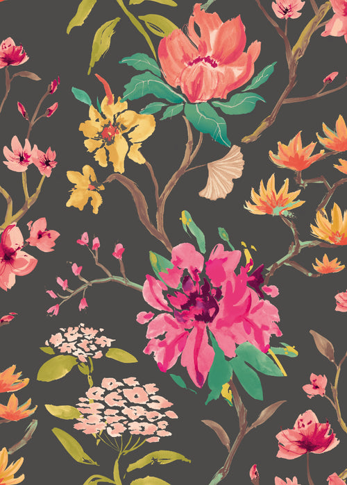 Meaning "to bloom’ in Japanese, Saku is a celebration of nature in its fullest beauty. A graceful arrangement of iconic Japanese flowers - including peonies, magnolias and cherry blossom - unfolds across the design in a hand-painted display of delicate detail and vibrant colour. Drawing inspiration from traditional Japanese ink and watercolour techniques, this floral composition evokes a sense of balance.