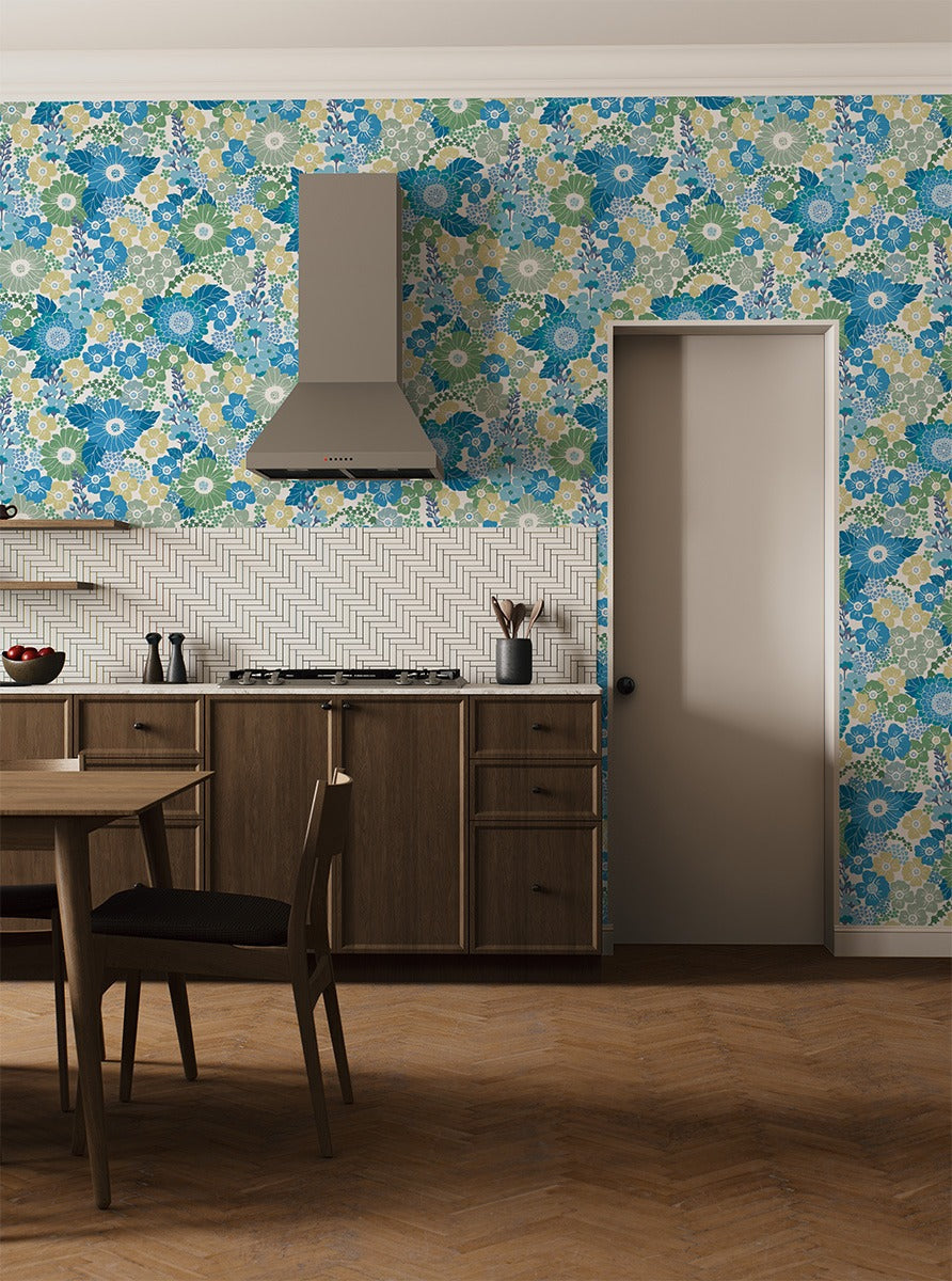 Sample - Flower Power - Custom Sized Wallpaper Mural (per m2) - Blue Mood