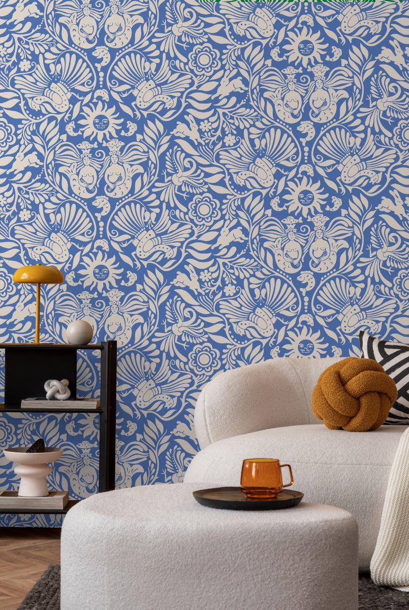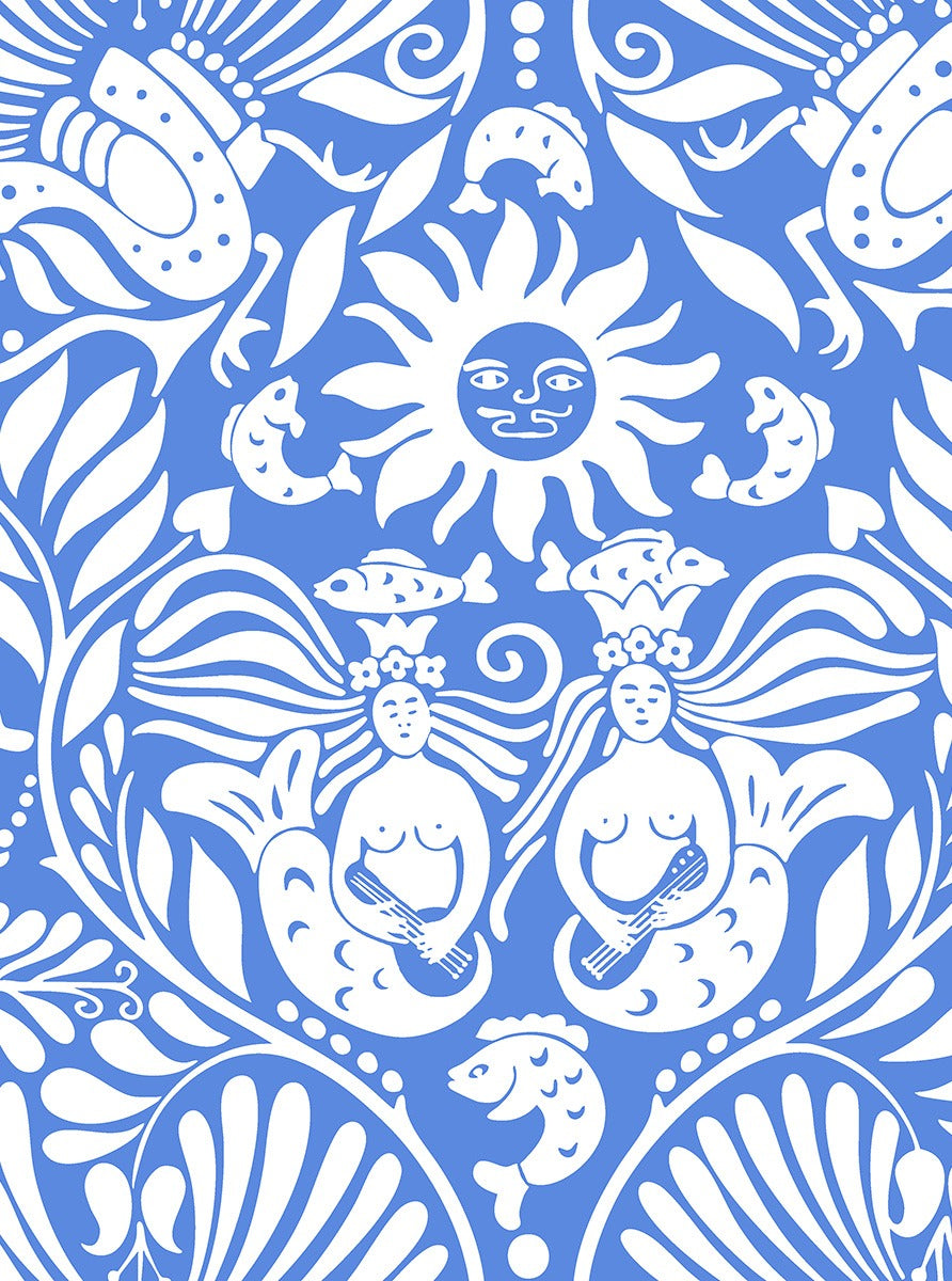 Sample - Mermaid Groove - Custom Sized Wallpaper Mural (per m2) - Blue