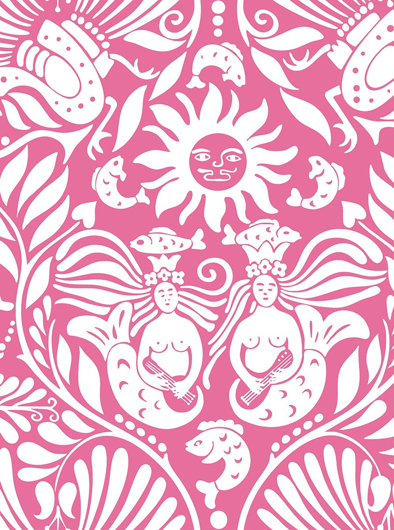 Sample - Mermaid Groove - Custom Sized Wallpaper Mural (per m2) - Pink