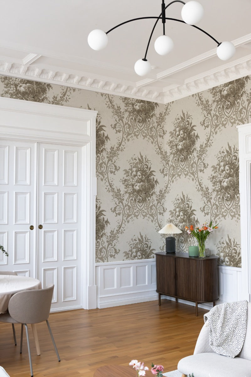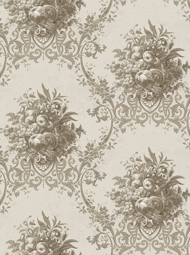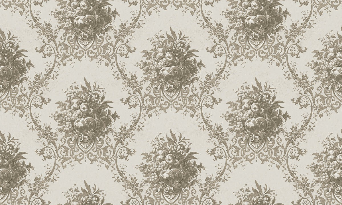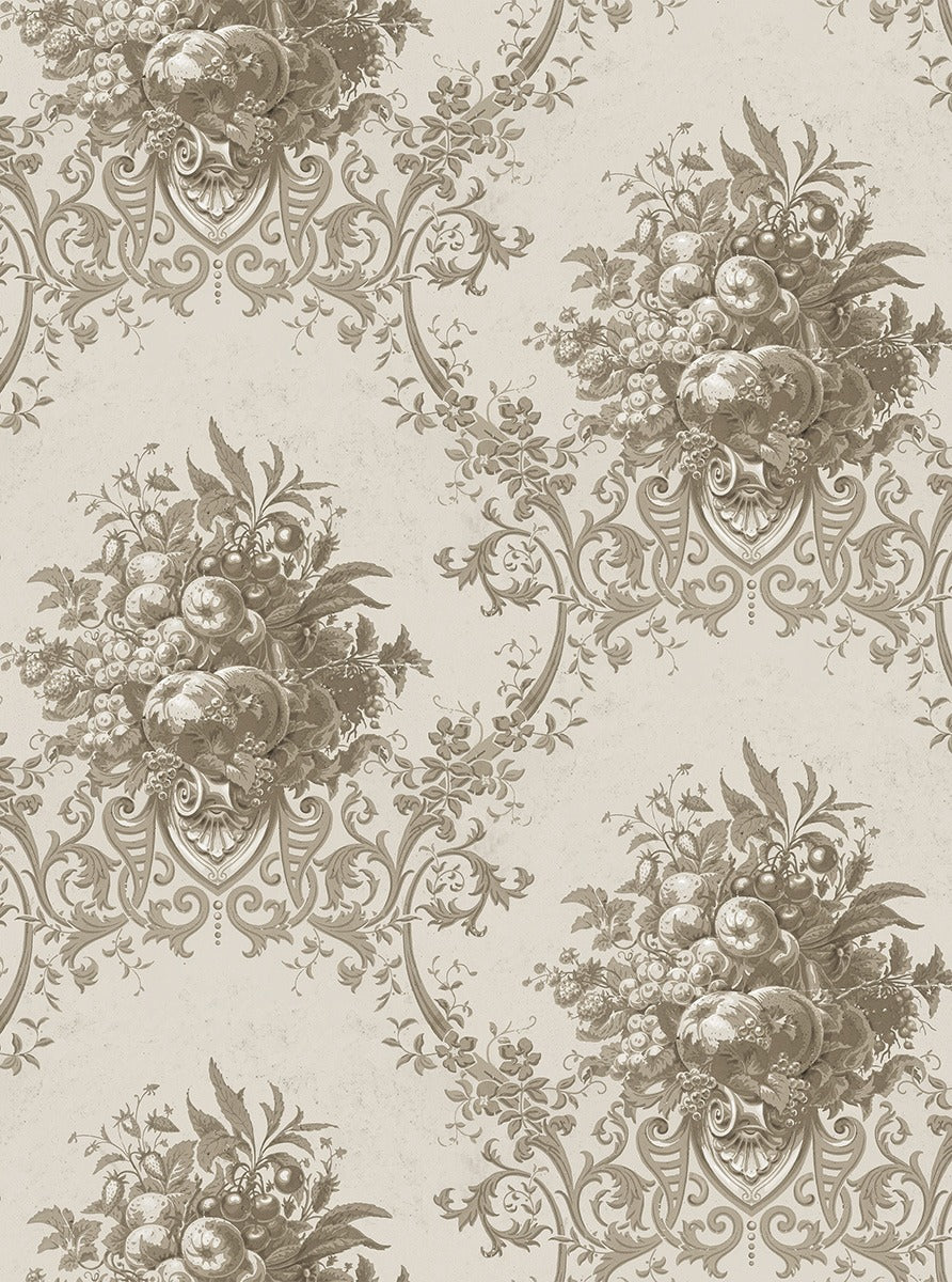 The Design: Paradise Medallion is a pattern dating back to the late 19th century. This wallpaper combines the classic medallion motif with a playful touch of fruit and berries, where ripe apples, sun-kissed strawberries, and clusters of grapes are woven into a richly detailed ornament. The result is a vibrant and warm wallpaper that evokes thoughts of late summer days, blooming gardens, and historic homes filled with life and tradition.