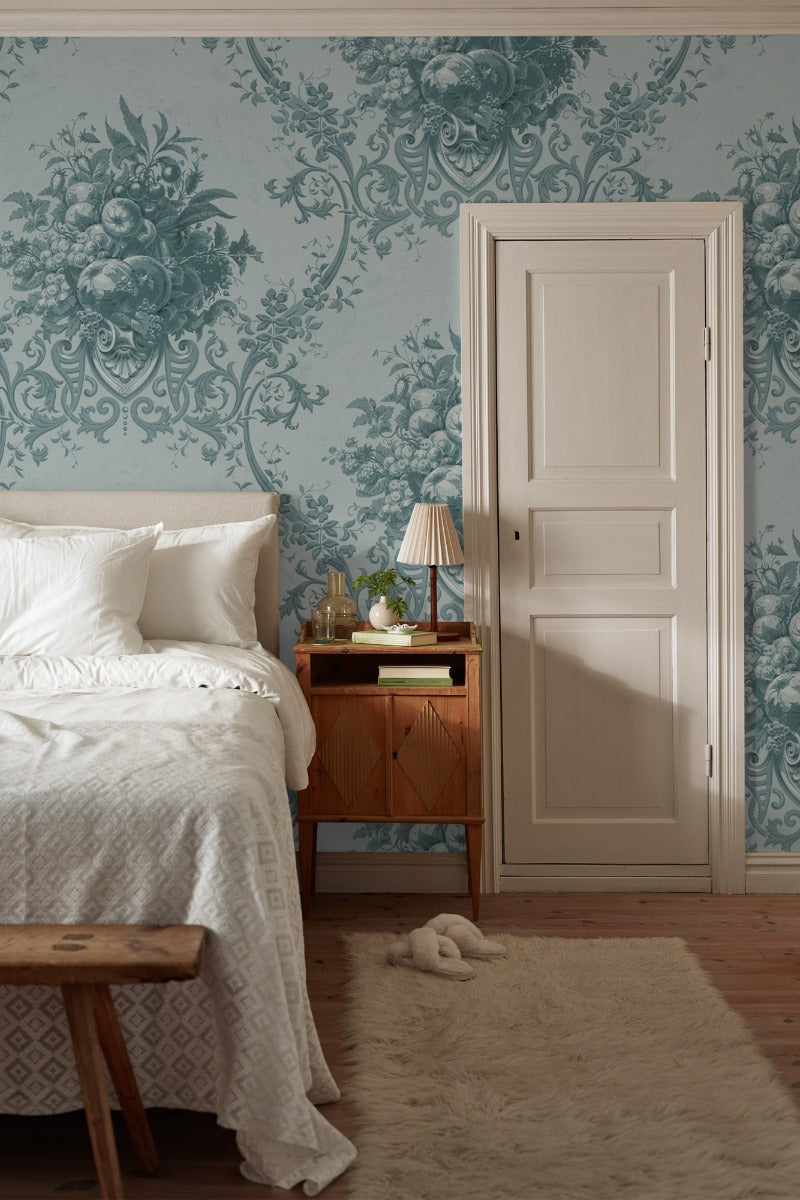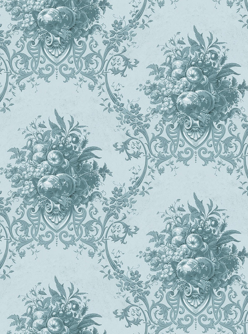 The Design: Paradise Medallion is a pattern dating back to the late 19th century. This wallpaper combines the classic medallion motif with a playful touch of fruit and berries, where ripe apples, sun-kissed strawberries, and clusters of grapes are woven into a richly detailed ornament. The result is a vibrant and warm wallpaper that evokes thoughts of late summer days, blooming gardens, and historic homes filled with life and tradition.