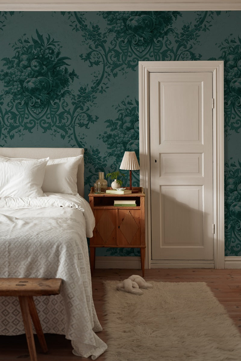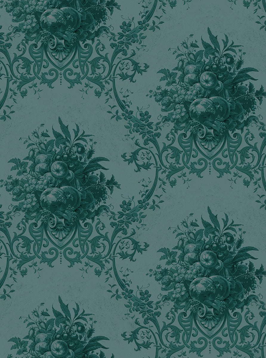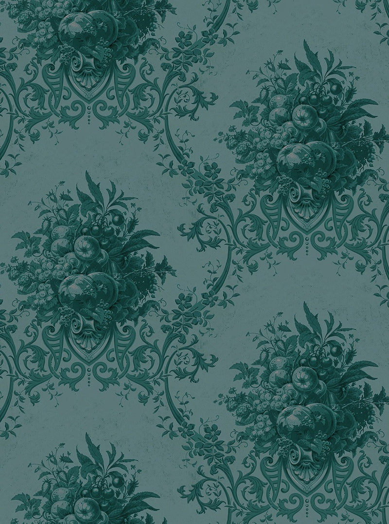 The Design: Paradise Medallion is a pattern dating back to the late 19th century. This wallpaper combines the classic medallion motif with a playful touch of fruit and berries, where ripe apples, sun-kissed strawberries, and clusters of grapes are woven into a richly detailed ornament. The result is a vibrant and warm wallpaper that evokes thoughts of late summer days, blooming gardens, and historic homes filled with life and tradition.