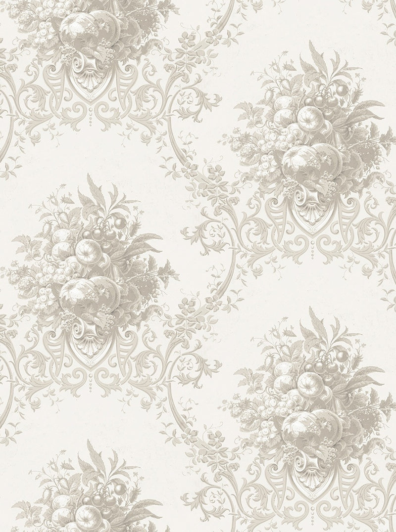 The Design: Paradise Medallion is a pattern dating back to the late 19th century. This wallpaper combines the classic medallion motif with a playful touch of fruit and berries, where ripe apples, sun-kissed strawberries, and clusters of grapes are woven into a richly detailed ornament. The result is a vibrant and warm wallpaper that evokes thoughts of late summer days, blooming gardens, and historic homes filled with life and tradition.