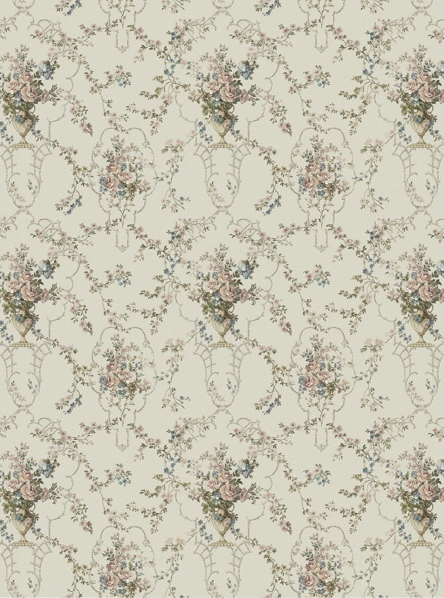The Design: Rose Antique is a wallpaper inspired by early 20th-century design. The pattern is a soft interpretation of the classic medallion wallpaper, where the formal design language of earlier centuries is softened by abundant roses and airy bouquets that spread gracefully across the surface. The wallpaper creates a light and lively impression, while also offering a calm and harmonious feel that suits bedrooms, dining rooms, and older interiors where you want to preserve or recreate a historical style.