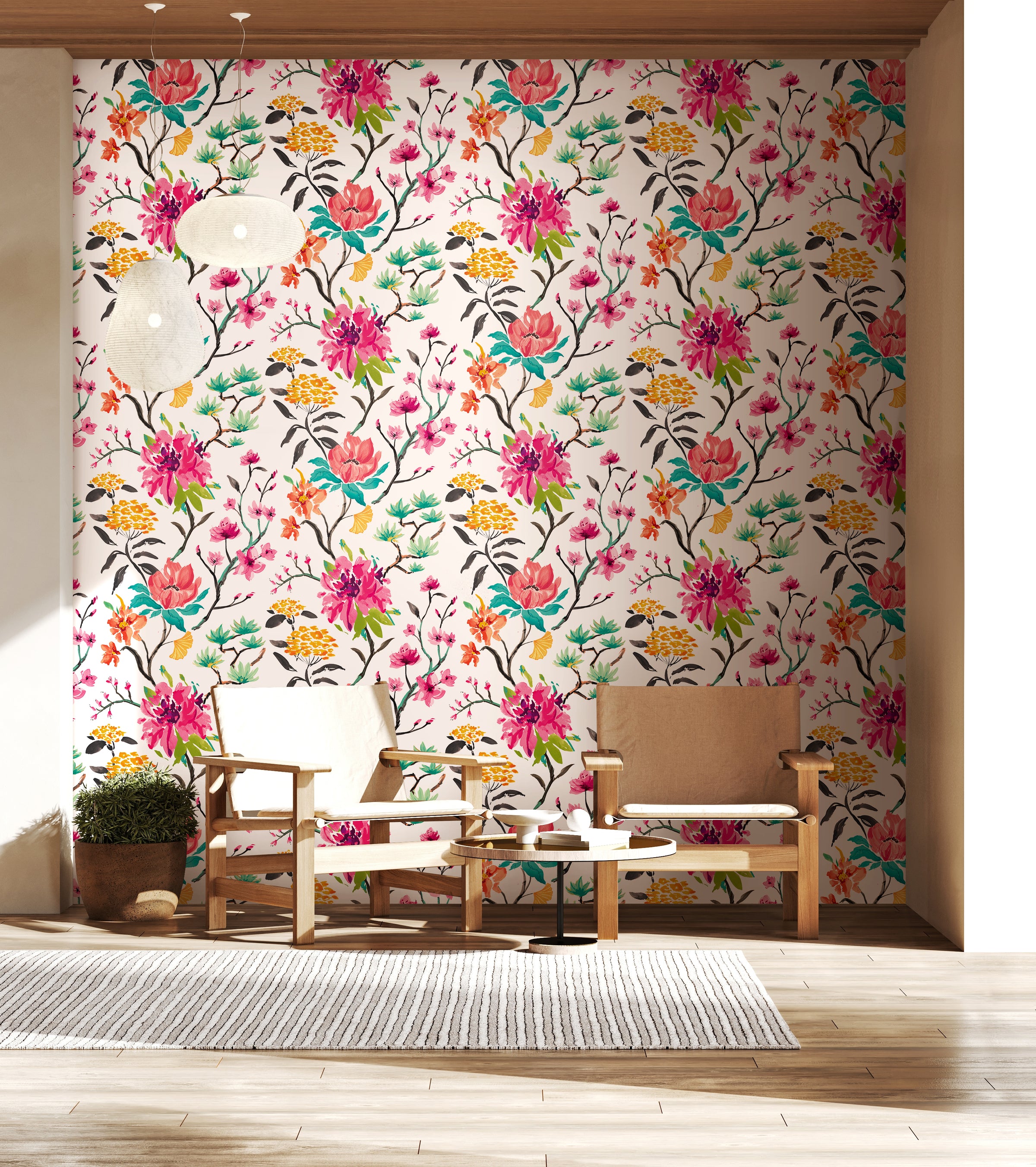 Blending classic Japanese artistry with bold modern colour, Saku depicts a captivating combination of tradition and expression, transforming any space into a vibrant garden of colour and culture.
