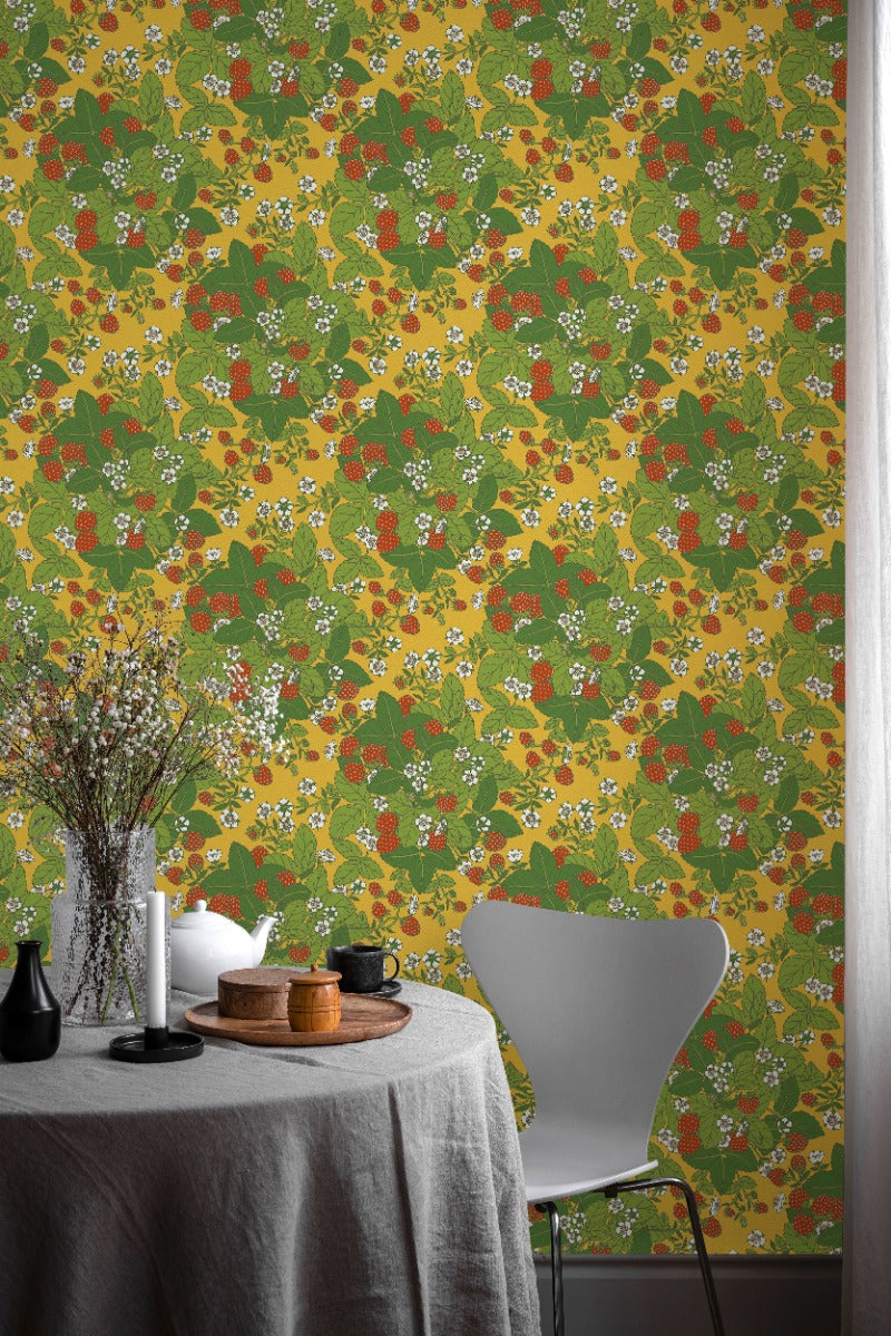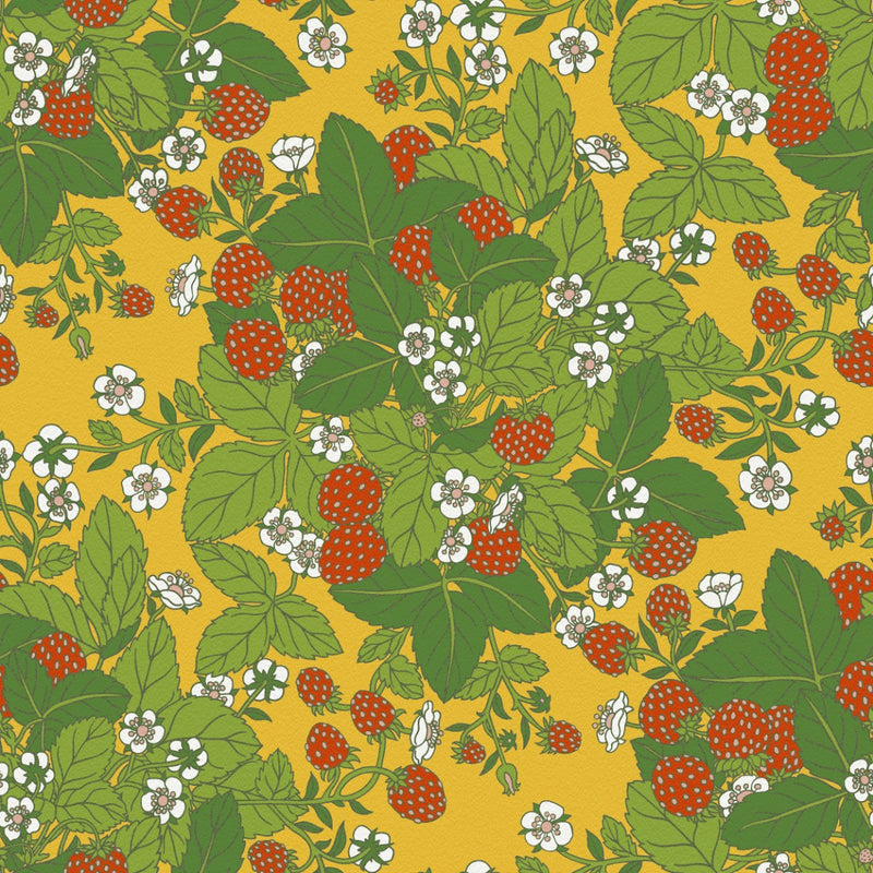 Sample - Strawberry Fields - Custom Sized Wallpaper Mural (per m2) - Yellow Multi