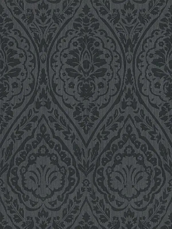 Sample - Textured Damask Textured Wallpaper - Grey/Black
