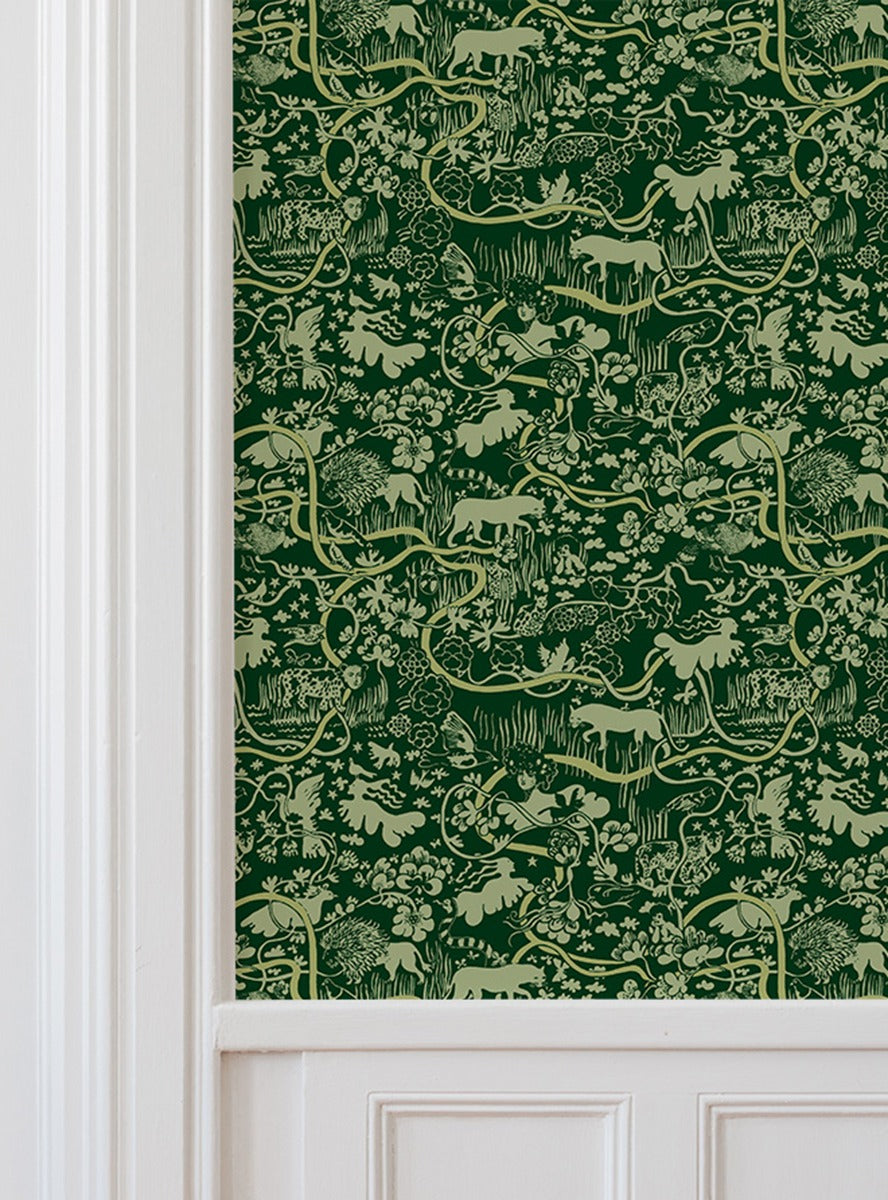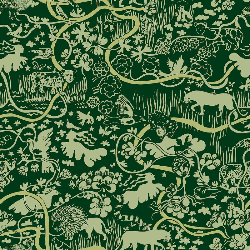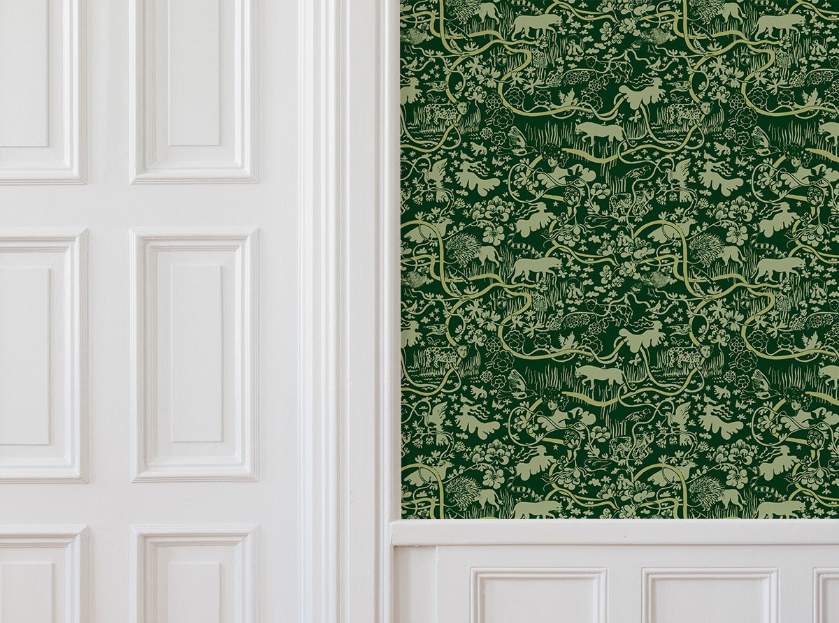 The Design: Vines is an iconic pattern designed by Sven Fristedt for Duro in the 1970s – now reissued in new, updated colorways. The distinctive design language is typical of its era: bold, organic, and full of movement. Drawing inspiration from both the lush greenery of the jungle and the graphic aesthetics of the time,Vintes is a vibrant pattern where stylized plant forms, along with imaginative animals and people, spread across the wall in a rhythmic flow. The result is a wallpaper with a strong presence – a confident choice for anyone looking to enhance a space with color, pattern, and a true 1970s vibe.