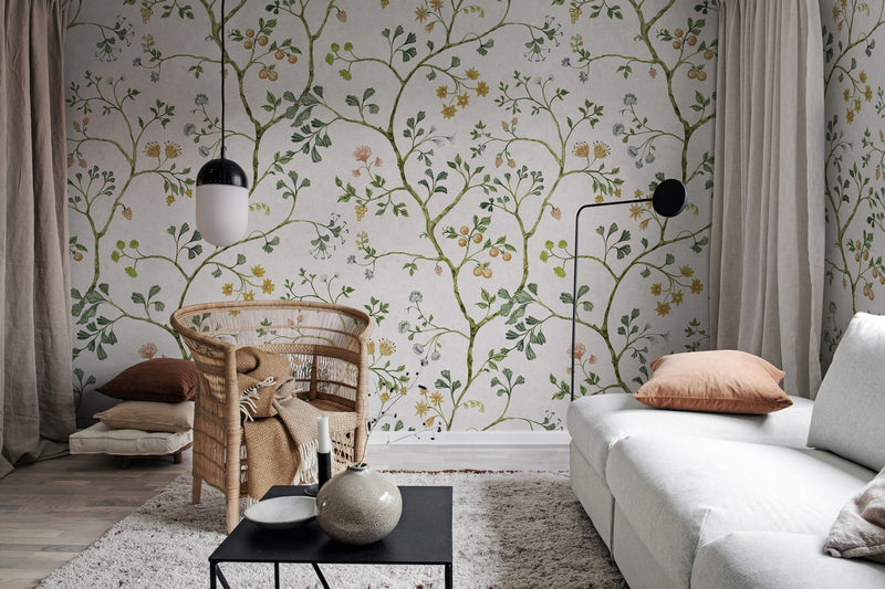 Inspired by the graceful beauty of branches, leaves, and flowers, this wallpaper brings a touch of botanical elegance to any room.