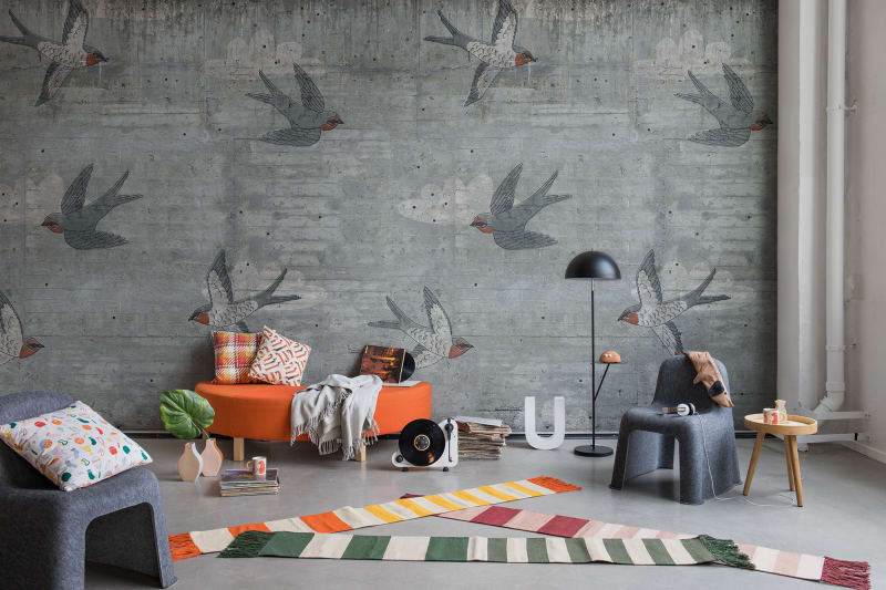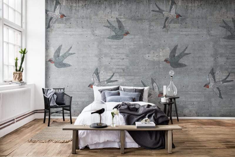 Concrete Swallows - Day - Custom Sized Mural Wallpaper (per m2)