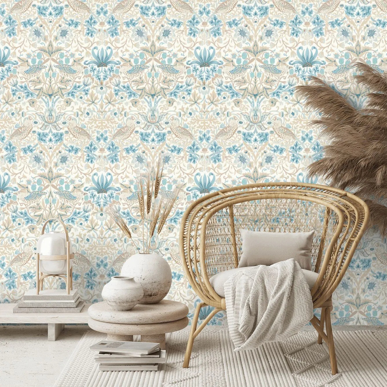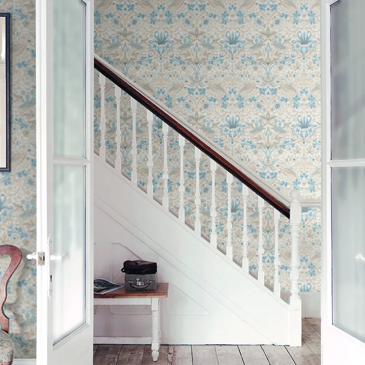 Strawberry Thief Wallpaper by William Morris is a classic illustration of fine style never going out of date. Originally designed in 1879, Morris & Co.'s famed Strawberry Thief pattern boasts swirling botanicals and thieving thrushes in a visually opulent scene.