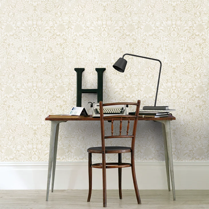 Sunflower Wallpaper by William Morris is a classic illustration of fine style that never goes out of date. 'Compton' was designed by John Henry Dearle in 1895 specially for Compton Hall in Wolverhampton. The original design required two sets of wood blocks to print all 28 colours, owing to the large vertical repeating pattern but has since been scaled down and adapted for a wider audience. This wallpaper that has been kicking around for well over a hundred years now is still a style icon.