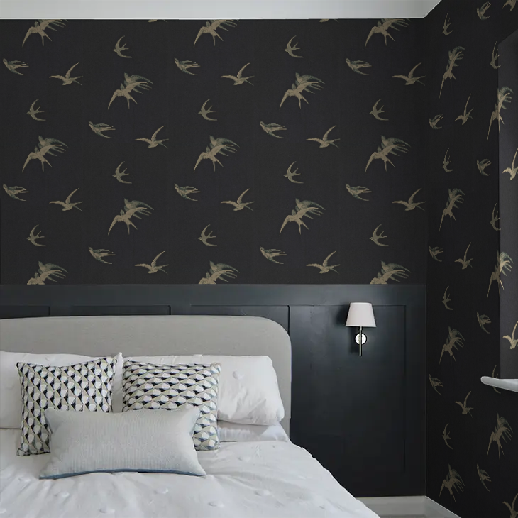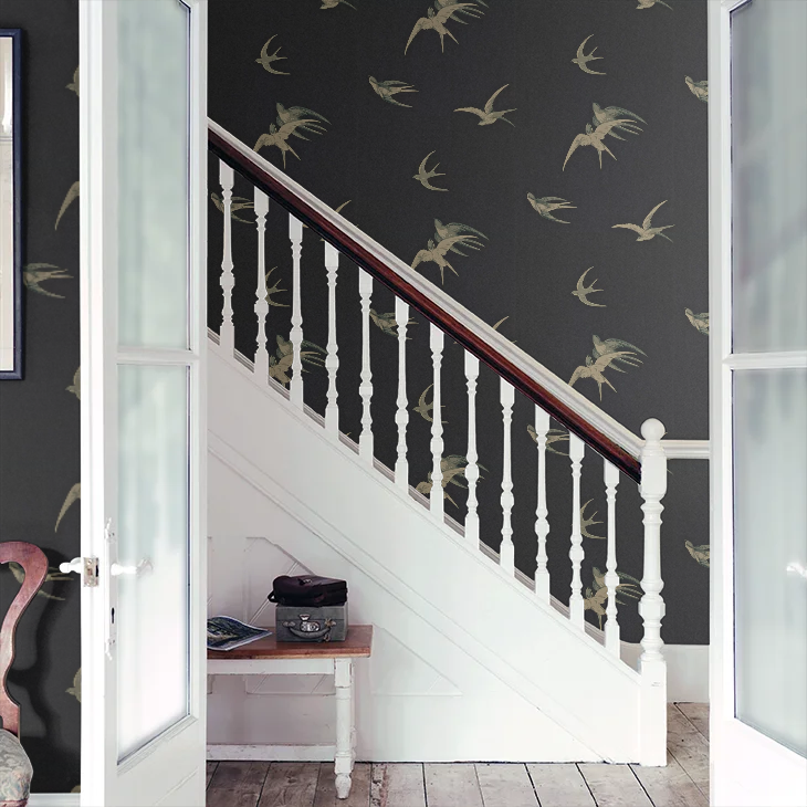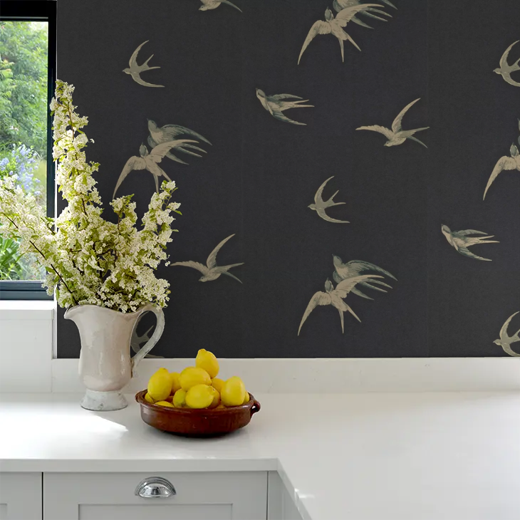 From the Vintage Collection of wallpapers comes 'Swallows' the wallpaper. Featuring delicately drawn birds soaring through a summer sky. The 'Swallows' wallpaper was originally a cotton chintz fabric that has been updated to be a wallpaper. This serene design featuring a beautiful hand painted swallow design, dates back to the 1930s and exemplifies the stylised elegance associated with this era. Available in 5 great colours, Swallows is elegant, timeless and simply stunning.