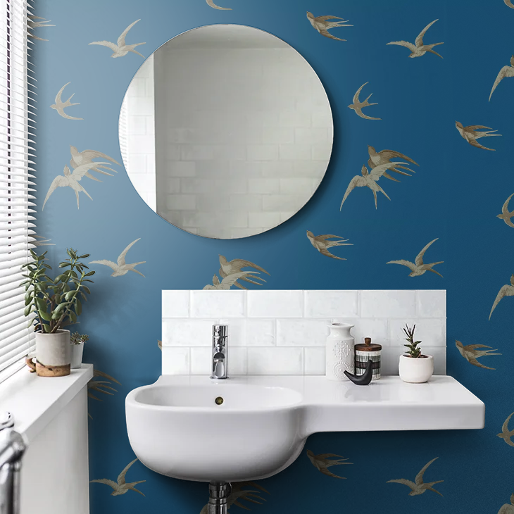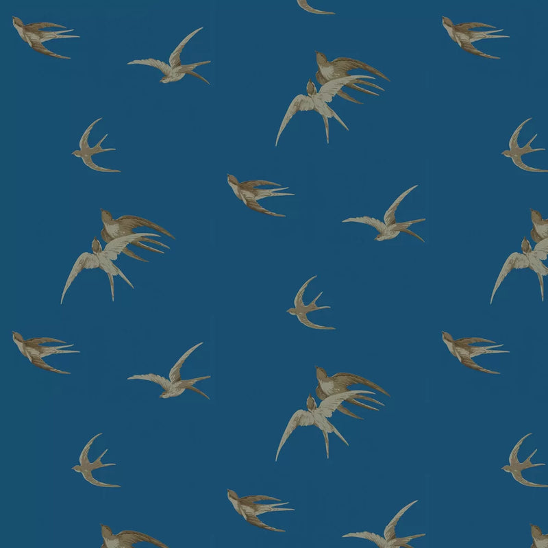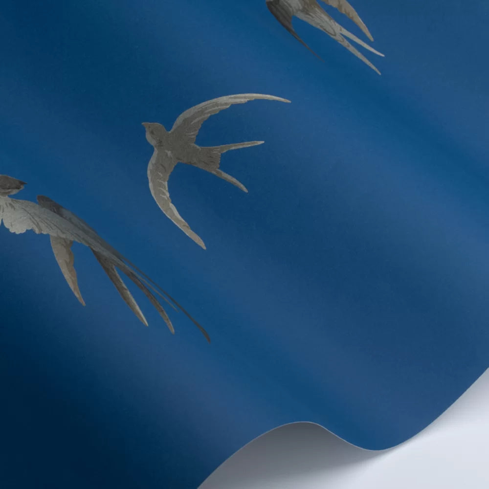 Swallows Wallpaper - French Blue