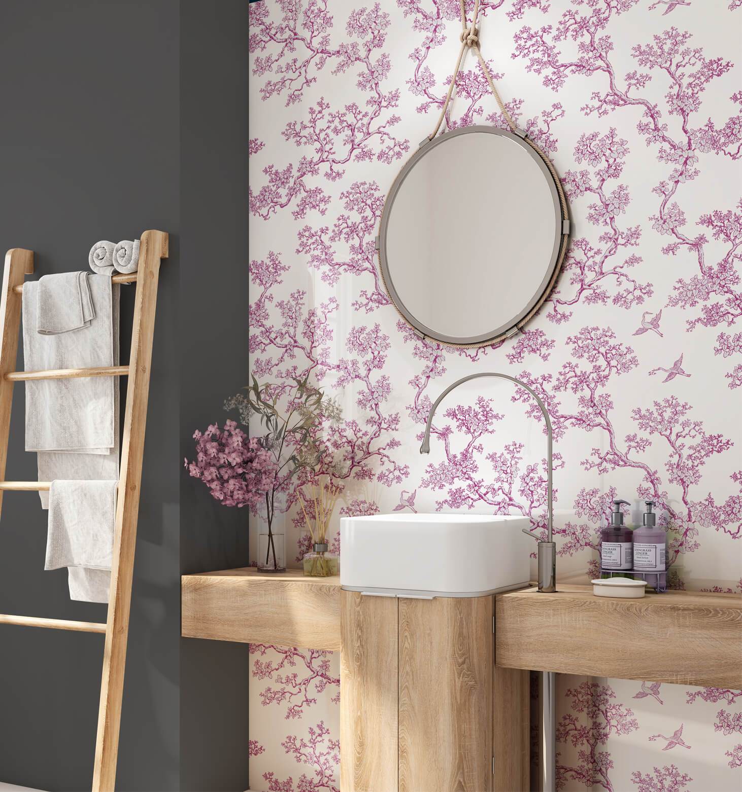 The Cranes - Florence Broadhurst Wallpaper - Magenta
