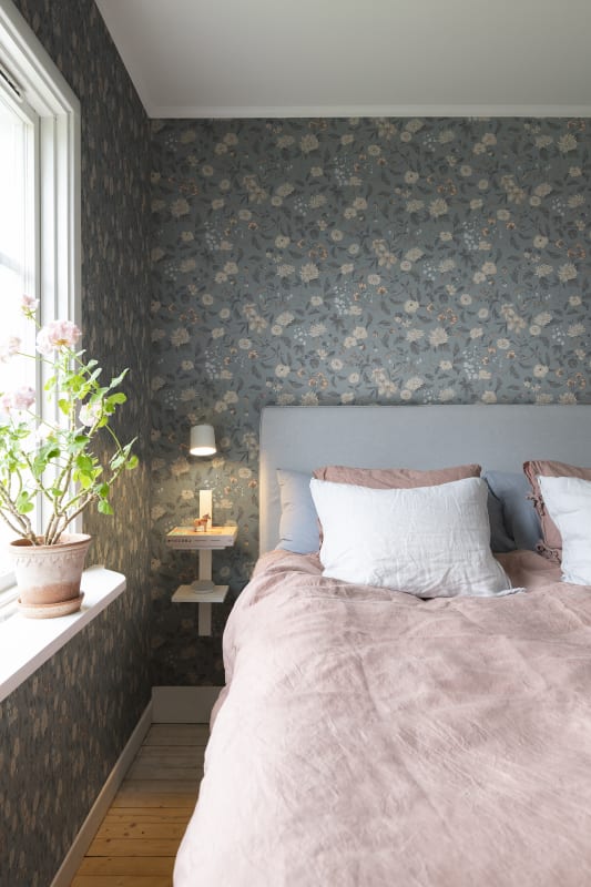 This design is part of the collection inspired by Carl and Karin Larsson, an iconic and beloved Swedish design family active in the 19th century. The design duo still inspires the whole world with their artistry, their home and their way of living. This hand-painted design adds beauty to your home. This design gives you the possibility to create both intense coziness and an airy feeling to a bedroom. This delicate and decorative wallpaper gives a sense of enlarging a space and an airy feeling of being outdoors during the lovely Swedish summer. The creative couple Karin & Carl Larsson loved to surprise and show appreciation for each other through creative expressions. The wallpaper “Till Karin”, is a new chapter of the original wall painting located above Karin’s bedroom door in their inspiring home, Lilla Hyttnäs. This painting was a gift and a declaration of love to Karin from Carl Larsson in 1894 representing flowers from their beautiful garden. Carl and Karin Larsson often painted decorative murals directly on the walls also involving their four children in the process. The name of the wall mural is shared with their daughter Suzanne, who co-created a flowery border in her own room at their iconic home.Designed by Carl Larsson SW