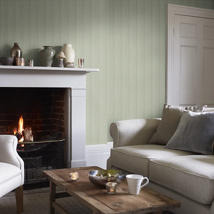 A wood panel wallpaper creating a sense of character and charm to any space. With its subtle texture and soft, painted finish, this design is ideal for choice for your home.