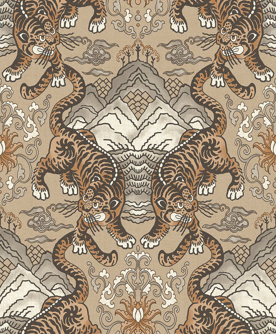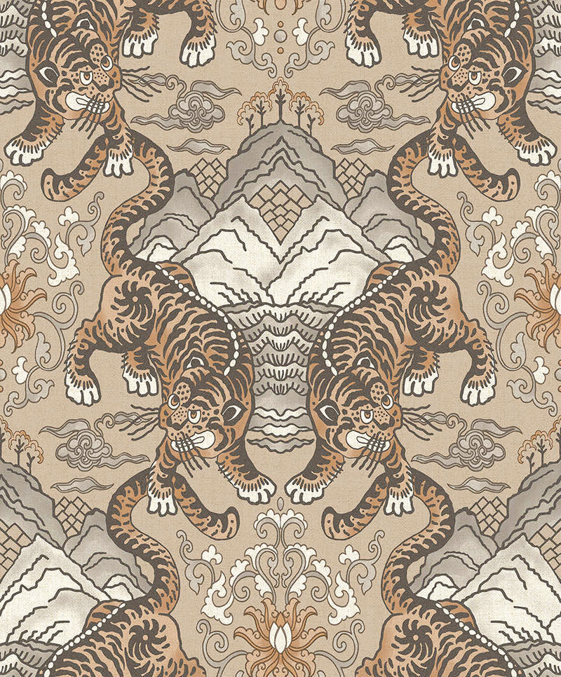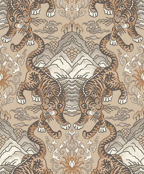 Tora - Chinese Tiger Wallpaper - Taupe - Discontinuing