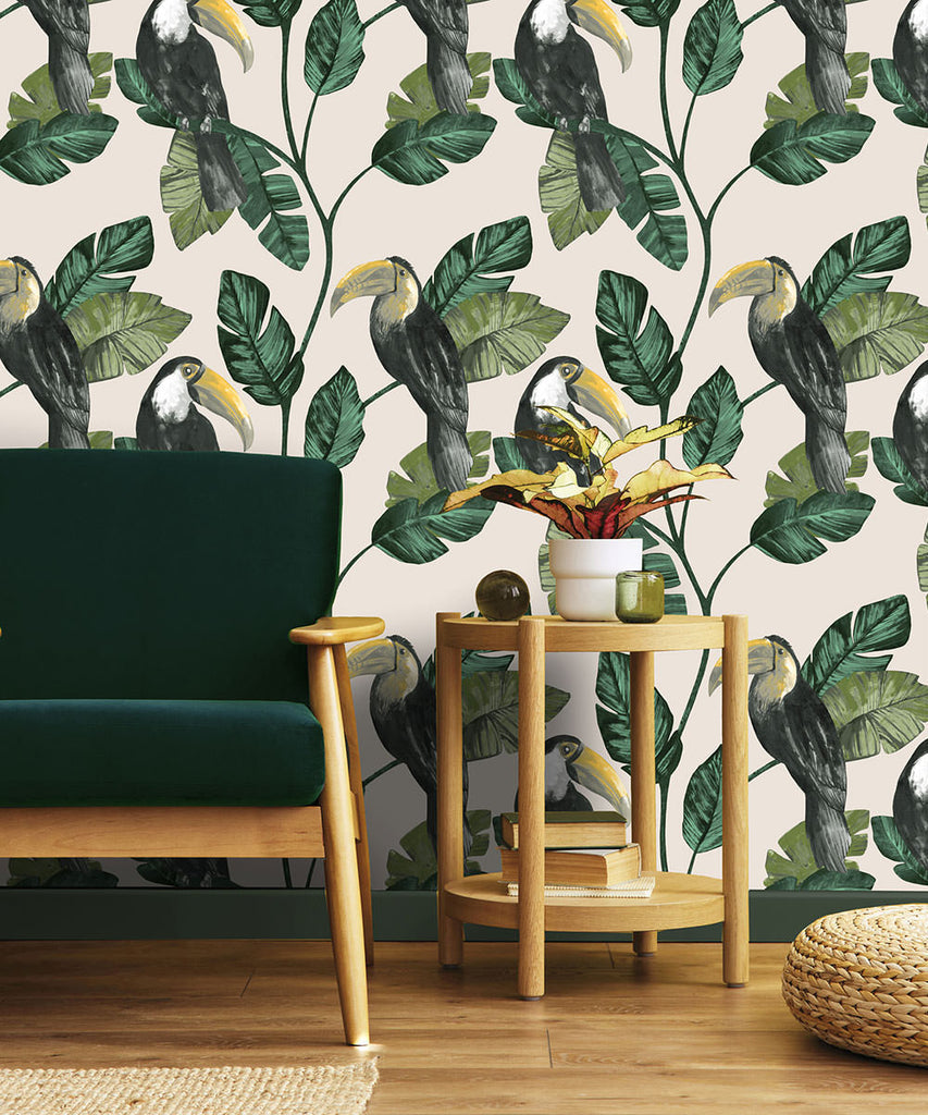 Another fun wallpaper from Holden Decor - Tiki Toucan wallpaper. A fun vibrant and easy to hang wallpaper from the Amazonia collection.
