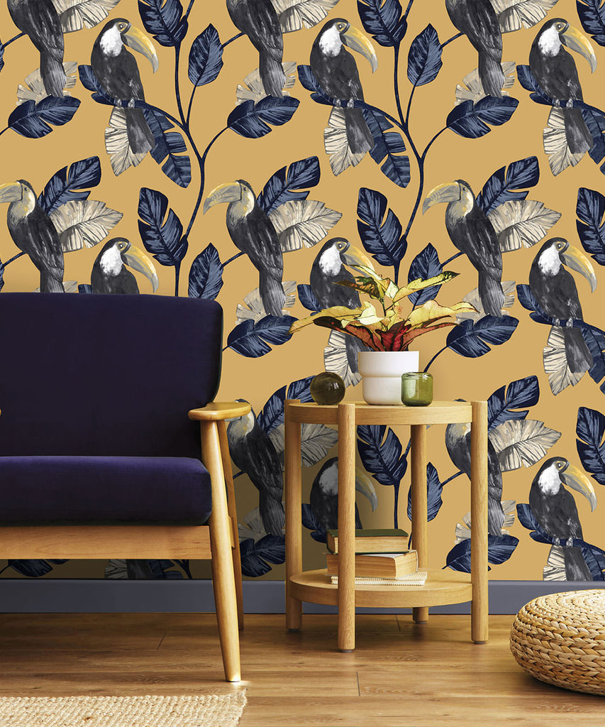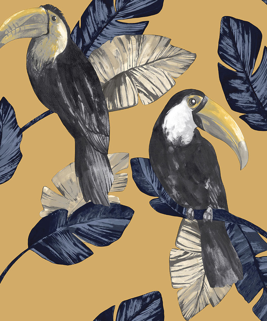 Toucan Tiki Wallpaper - Ochre - Last 24 Rolls Arriving Feb 2025