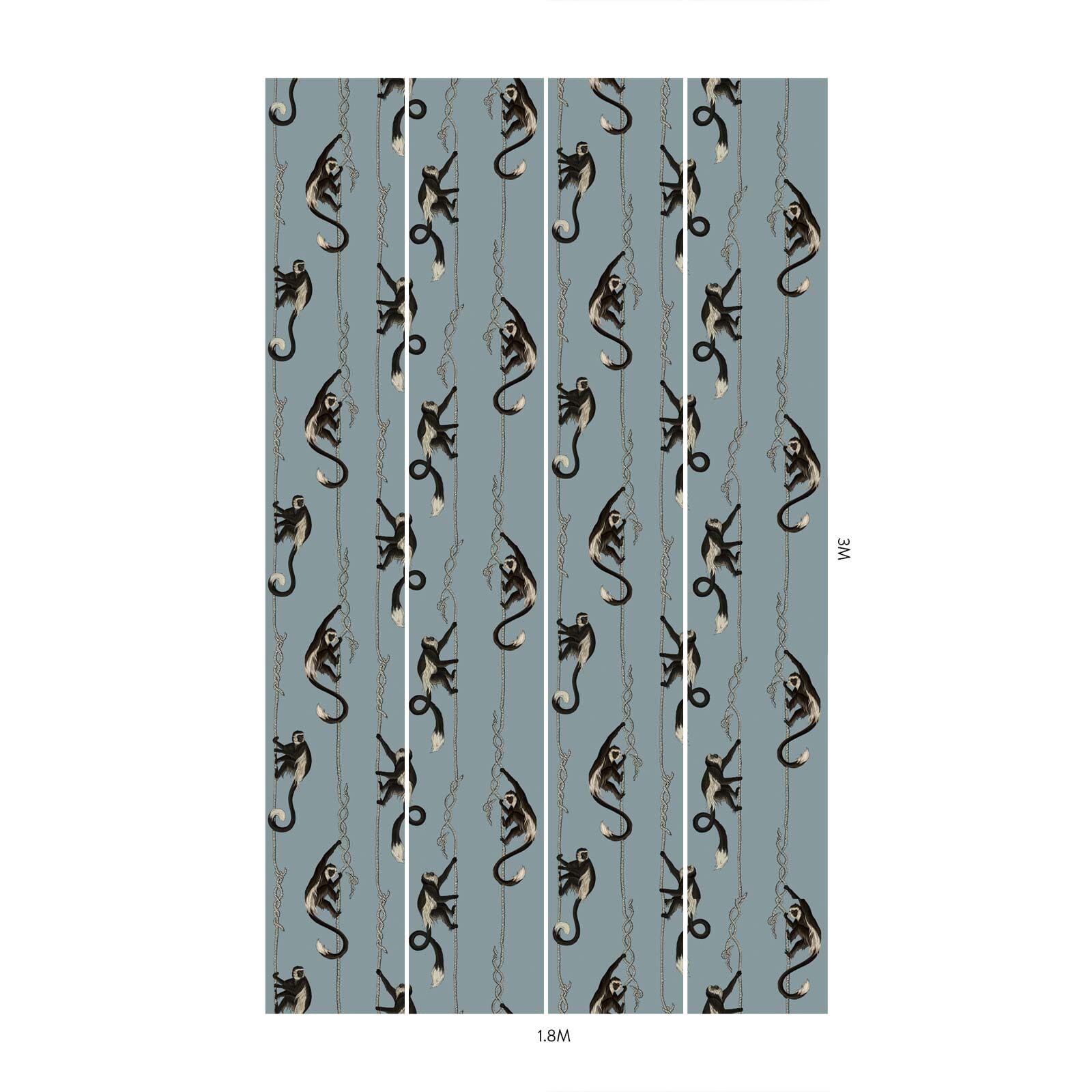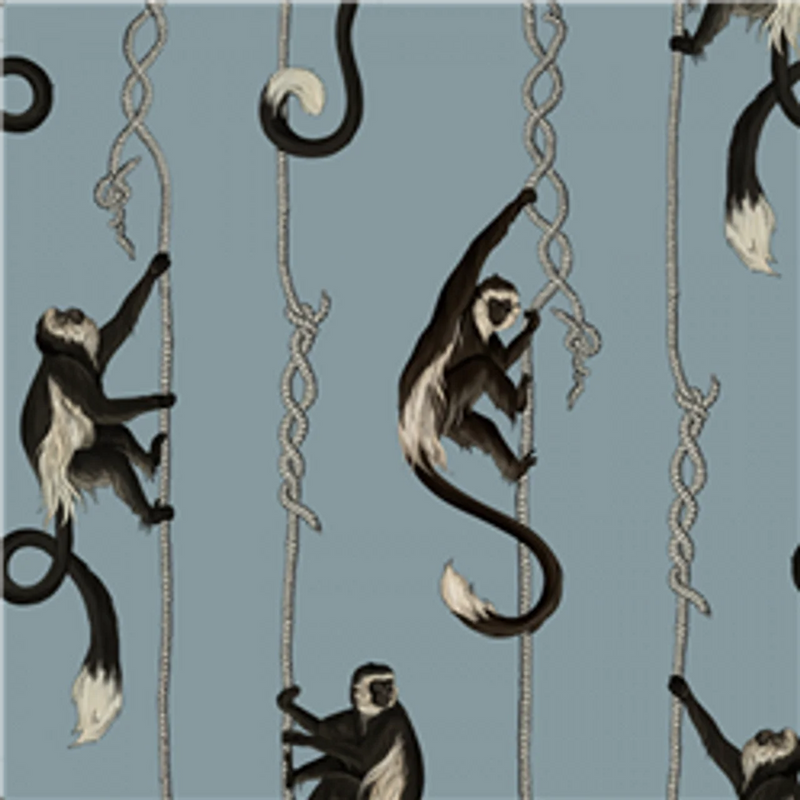 An animated masterpiece illustrated with a lively troop of climbing monkeys that embodies the brand's deep appreciation for the wonders of the animal kingdom. In the serene hue of Dusk, a captivating blue-grey shade that effortlessly complements any interior scheme, this wallpaper is a celebration of both nature and design. Originally conceived to infuse charm into small, less visible spaces, Troop effortlessly transforms entire walls into captivating canvases of character and whimsy.