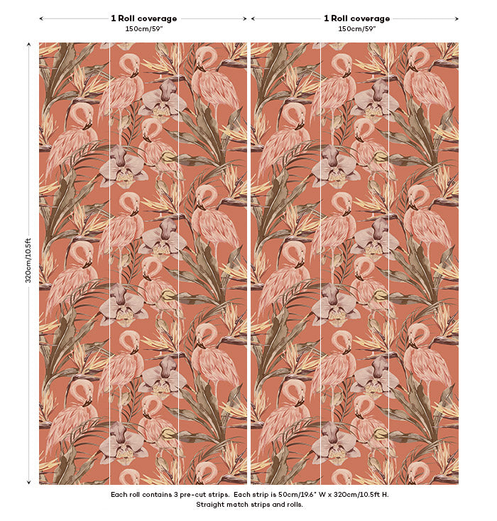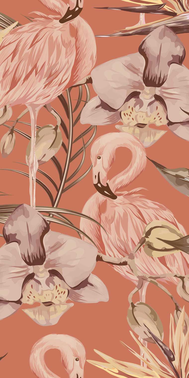 Tropical Shore Flamingo Hybrid Mural - Terracotta