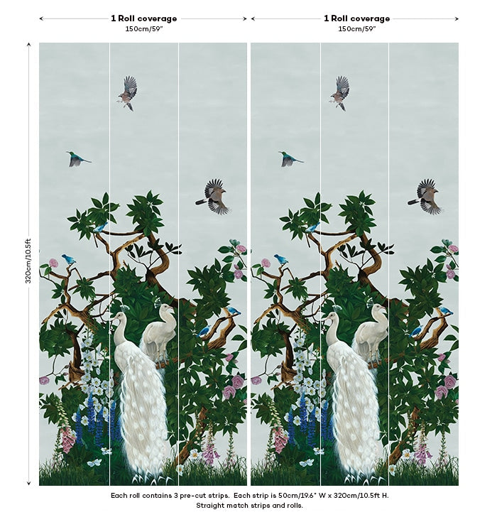 Vera's Garden - Peacock Wallpaper - Powder Blue