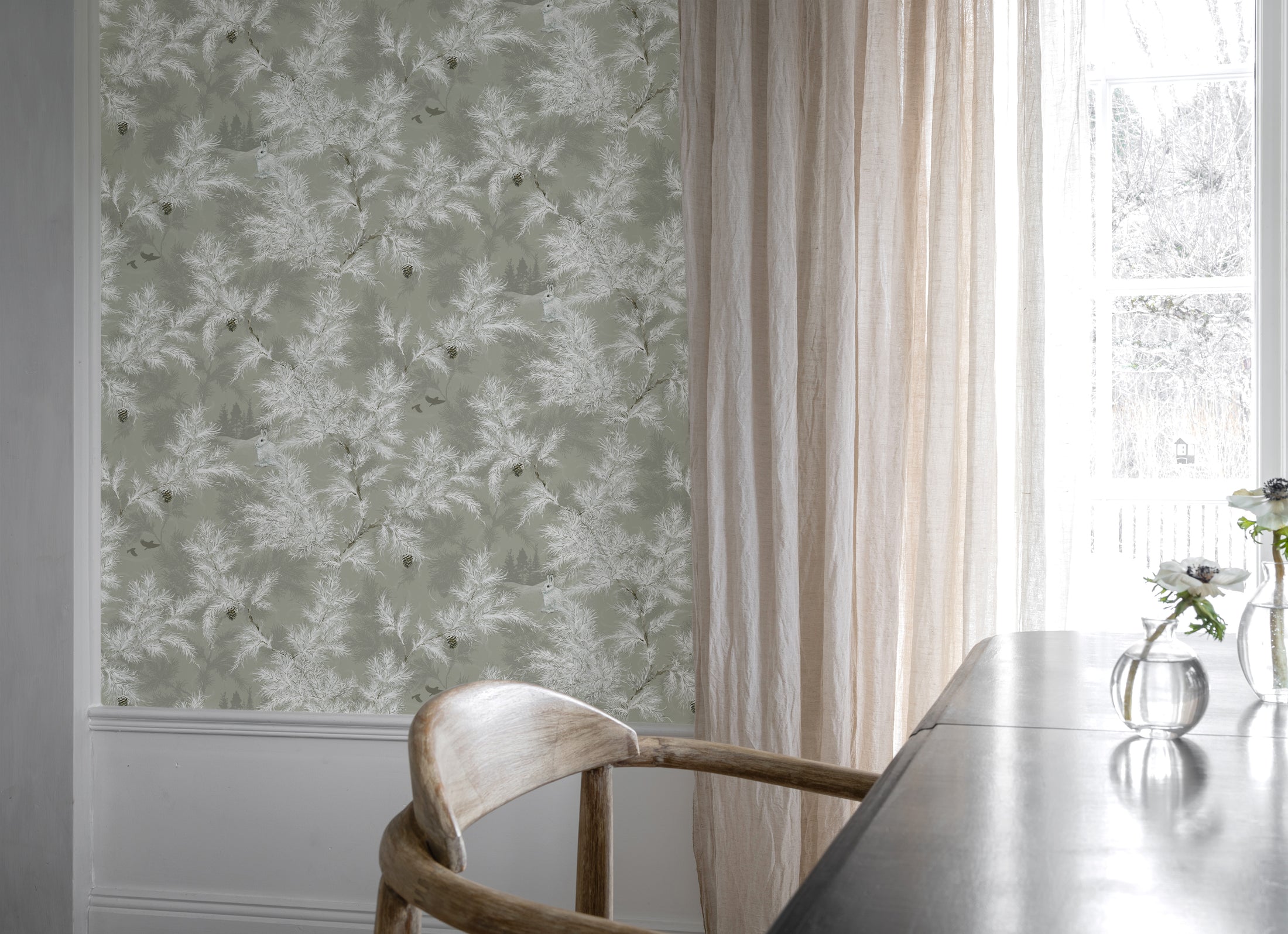 Frost, snowflakes, and quiet snowfall. In the winter glade, a hare rests by the edge of the field. Soon, dusk will fall. We wanted to capture the winter day in our own version of the glade. Warm, soft gray and white tones convey the stillness and calm of the season’s rest.