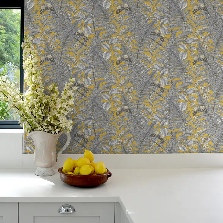 This wonderful botanical design features and array of detailed ferns and fronds twisting and turning as though blowing in the breeze. Detailed illustrations of moths and flowers dance around the scene to create the perfect homage to nature.