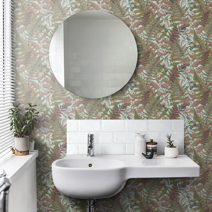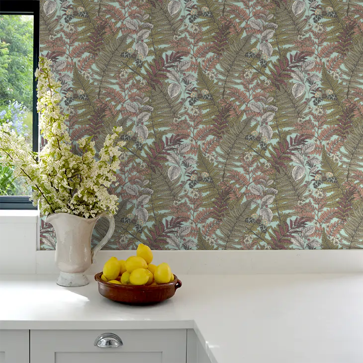 This wonderful botanical design features and array of detailed ferns and fronds twisting and turning as though blowing in the breeze. Detailed illustrations of moths and flowers dance around the scene to create the perfect homage to nature.